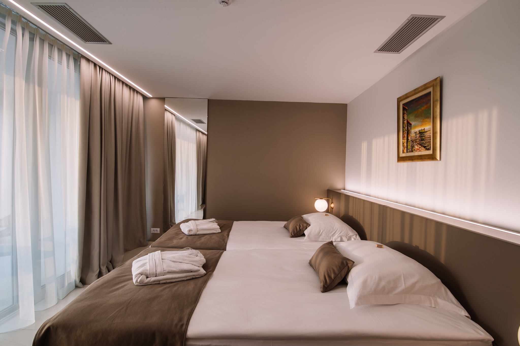 Apartament może przyjąć 4 gości. Łóżka znajdują się w sypialniach, których jest 1, oraz w pokoju dziennym, na powierzchni 46m2. Goście mają dostęp do balkonu, by korzystać z ciepłych, letnich wieczorów. Z apartamentu roztacza się widok na morze. W trakcie swojego pobytu goście mogą korzystać ze wspólnego basenu. W kwaterze dozwolony jest pobyt zwierzęcia domowego, za dopłatą. WLICZONE W CENĘ: śniadanie, sprzątanie końcowe, klimatyzacja, centralne ogrzewanie, basen, parking, internet, łóżeczko dziecięce, żelazko, deska do prasowania, suszarka do włosów. OBOWIĄZKOWE KOSZTY DODATKOWE: taksa pobytowa (dorośli 0,93 € - 1,60 € noclegosoba, zniżka dla dzieci w wieku 12 - 17 lat). NIEOBOWIĄZKOWE KOSZTY DODATKOWE: zwierzęta domowe (15,00 € za nocleg). Dostępność dodatkowych usług w rezerwowanym terminie oraz ich cenę (jeśli nie jest podana) należy sprawdzić wcześniej. Za dodatowe usługi, które nie zostały uwzględnione w kalkulacji ceny, płaci się bezpośrednio właścicielowi obiektu, pod warunkiem śe gość korzysta z tych usług. Zniżki od ceny podstawowej: bezpłatny dzień 14=13 (przy pobycie, trwającym co najmniej 14 dni, otrzymujecie jeden bezpłatny dzień na pobyt do 31.12.2026).