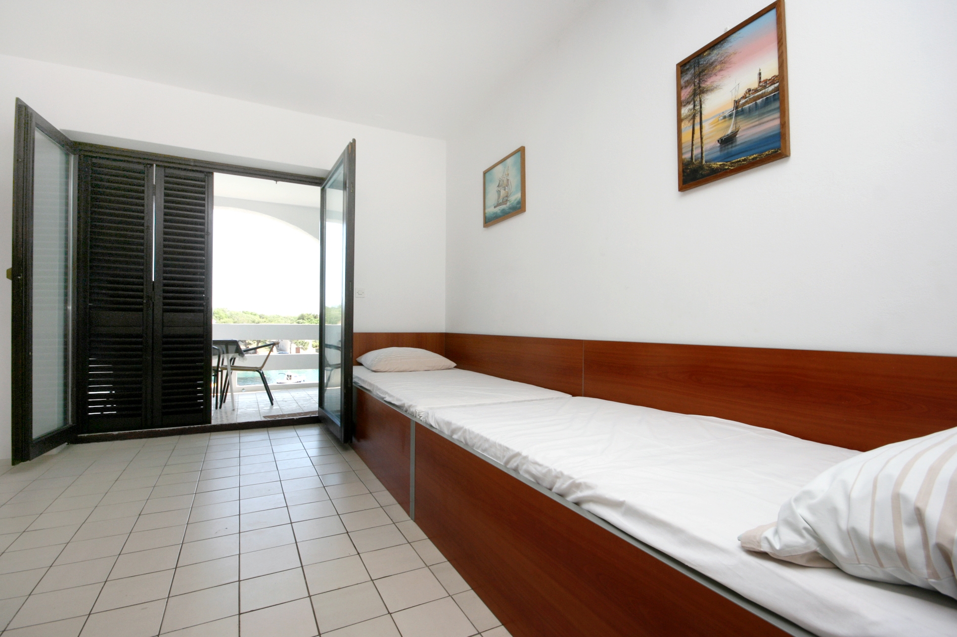 Apartament może przyjąć 4 gości. Łóżka znajdują się w sypialniach, których jest 1, oraz w pokoju dziennym, na powierzchni 30m2. Goście mają dostęp do tarasu, by korzystać z ciepłych, letnich wieczorów. Z apartamentu roztacza się widok na morze. Możliwość przygotowywania posiłków poprzez korzystanie ze wspólnego grilla. W trakcie swojego pobytu goście mogą korzystać ze wspólnego basenu. W rezerwowanej kwaterze na miejscu jest pobierana kaucja (jej wysokość jest podana na stronie). WLICZONE W CENĘ: taksa pobytowa, sprzątanie końcowe, basen, parking, internet, miejsce do cumowania łodzi, suszarka do włosów, parasol, leżaki. OBOWIĄZKOWE KOSZTY DODATKOWE: depozyt (100,00 € jednorazowo), dopłata za krótki termin (procent dopłaty w zalezności od liczby noclegów: 30% - 1, 20% - 2, 10% - 3). NIEOBOWIĄZKOWE KOSZTY DODATKOWE: klimatyzacja (5,00 € za nocleg). Dostępność dodatkowych usług w rezerwowanym terminie oraz ich cenę (jeśli nie jest podana) należy sprawdzić wcześniej. Za dodatowe usługi, które nie zostały uwzględnione w kalkulacji ceny, płaci się bezpośrednio właścicielowi obiektu, pod warunkiem śe gość korzysta z tych usług.