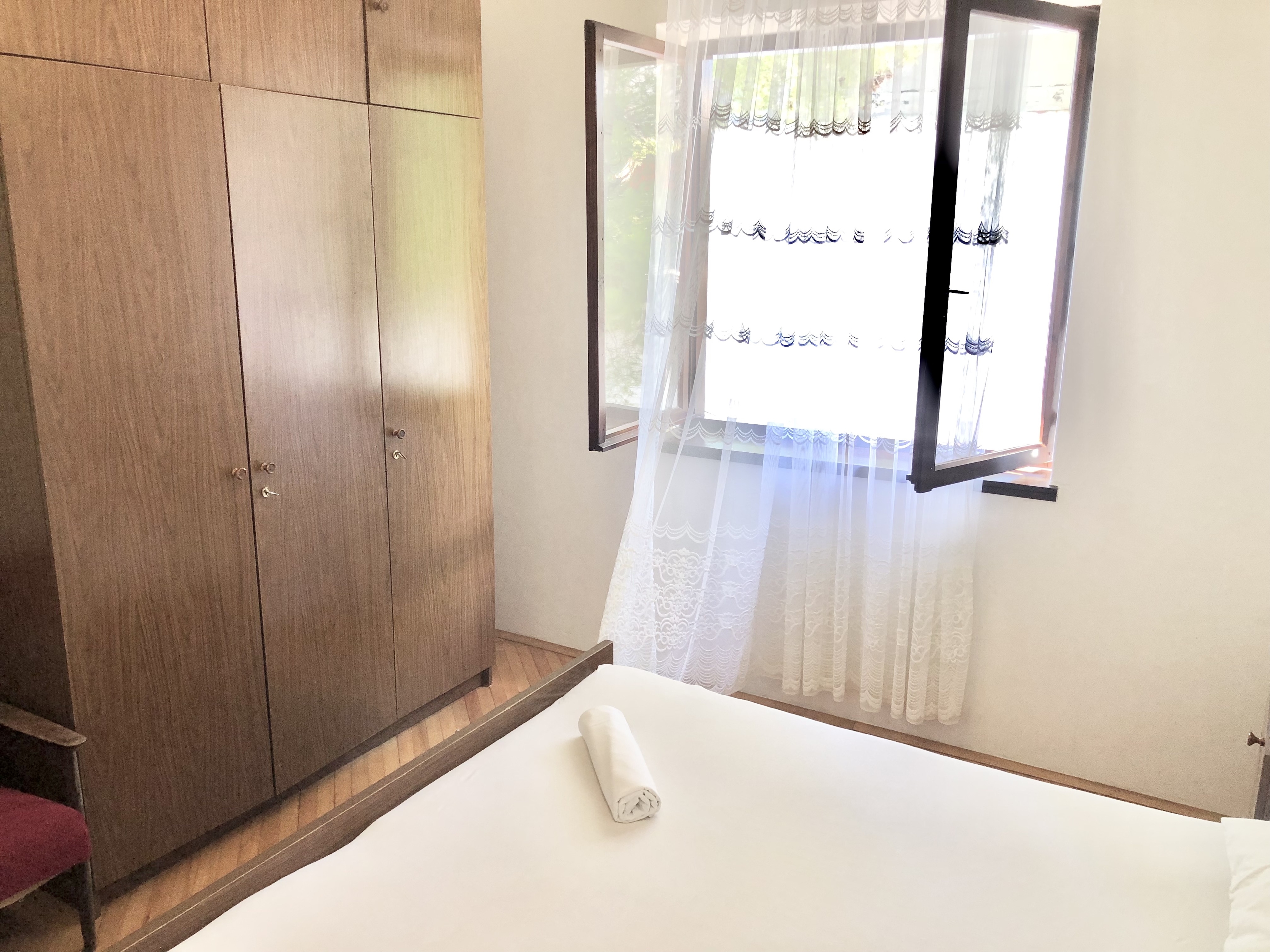 Apartament może przyjąć 5 gości. Łóżka znajdują się w sypialniach, których jest 2, oraz w jadalni, na powierzchni 51m2. Goście mają dostęp do tarasu, by korzystać z ciepłych, letnich wieczorów. Z apartamentu roztacza się widok na morze. Możliwość przygotowywania posiłków poprzez korzystanie ze wspólnego grilla. WLICZONE W CENĘ: taksa pobytowa, sprzątanie końcowe, klimatyzacja, parking, internet, miejsce do cumowania łodzi, żelazko, deska do prasowania, suszarka do włosów, przenośny grill, parasol, leżaki. OBOWIĄZKOWE KOSZTY DODATKOWE: dopłata za krótki termin (procent dopłaty w zalezności od liczby noclegów: 30% - 1, 20% - 2, 10% - 3). Dostępność dodatkowych usług w rezerwowanym terminie oraz ich cenę (jeśli nie jest podana) należy sprawdzić wcześniej. Za dodatowe usługi, które nie zostały uwzględnione w kalkulacji ceny, płaci się bezpośrednio właścicielowi obiektu, pod warunkiem śe gość korzysta z tych usług. Zniżki od ceny podstawowej: bezpłatny dzień 14=13 (przy pobycie, trwającym co najmniej 14 dni, otrzymujecie jeden bezpłatny dzień na pobyt do 31.12.2026).