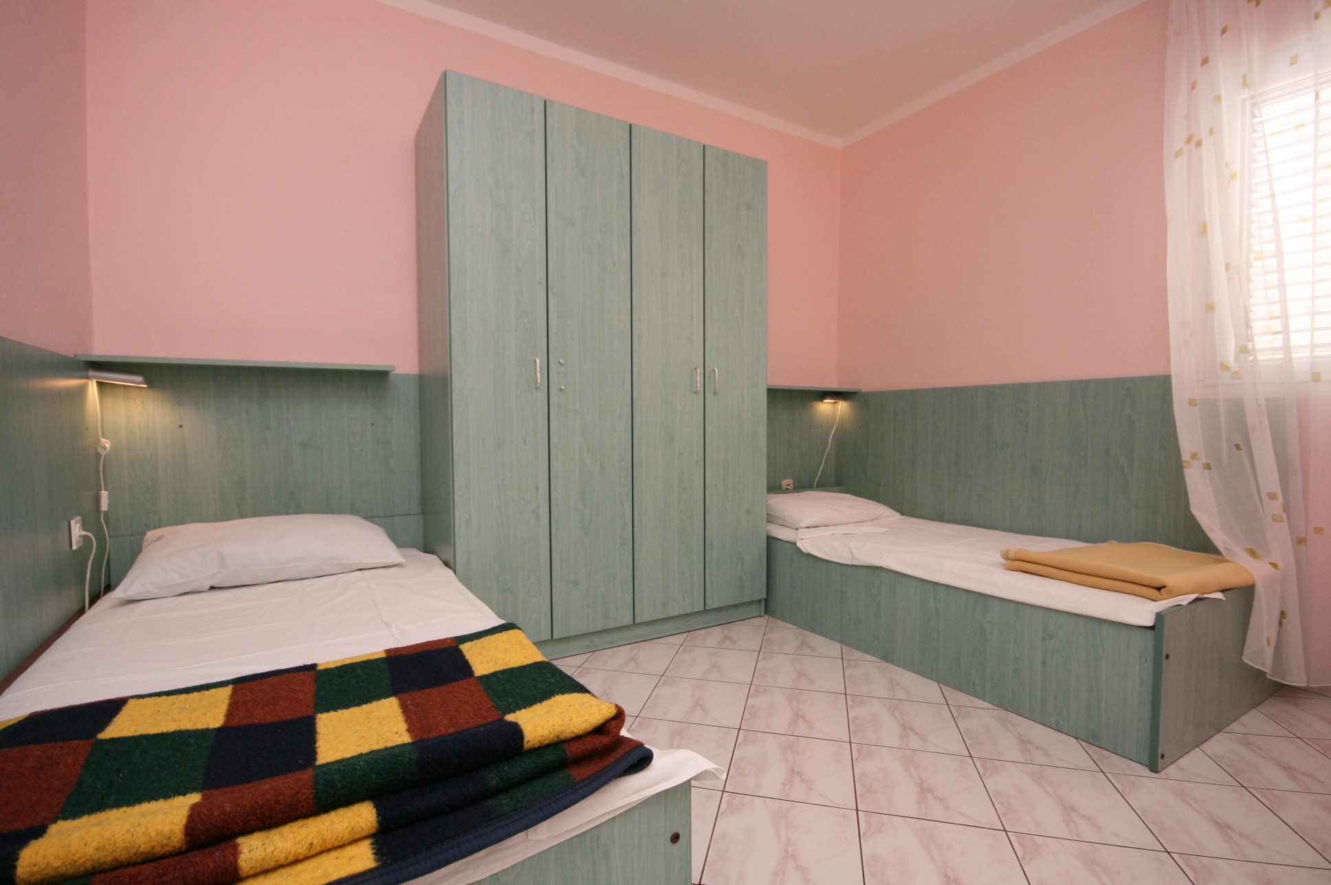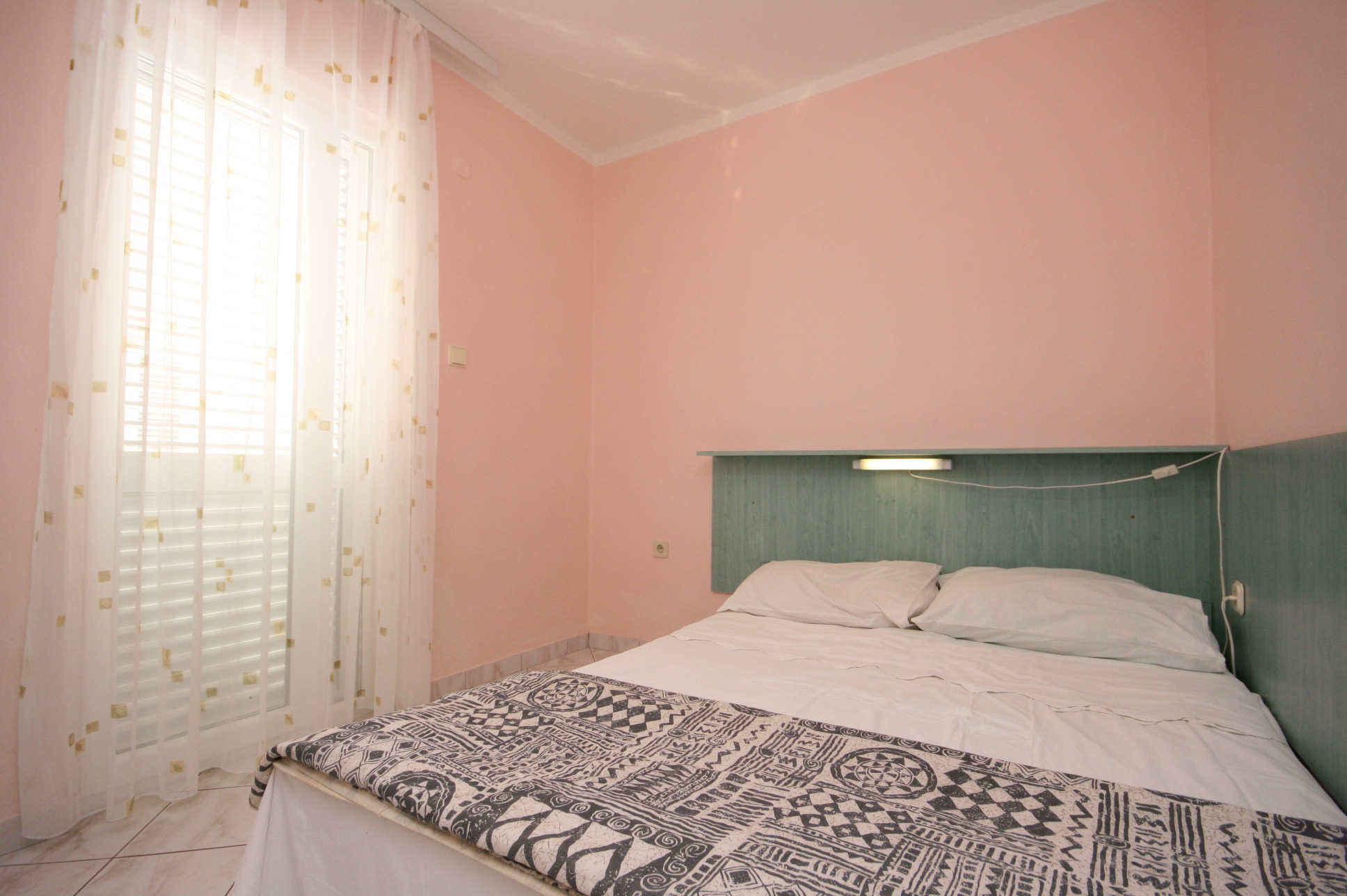 Apartament może przyjąć 4 gości. Łóżka znajdują się w sypialniach, których jest 2, na powierzchni 28m2. Goście mają dostęp do balkonu, by korzystać z ciepłych, letnich wieczorów. Z apartamentu roztacza się widok na morze. Możliwość przygotowywania posiłków poprzez korzystanie ze wspólnego grilla. W rezerwowanej kwaterze na miejscu jest pobierana kaucja (jej wysokość jest podana na stronie). WLICZONE W CENĘ: taksa pobytowa, sprzątanie końcowe, parking, internet, przenośny grill. OBOWIĄZKOWE KOSZTY DODATKOWE: depozyt (100,00 € jednorazowo), dopłata za krótki termin (procent dopłaty w zalezności od liczby noclegów: 30% - 1, 20% - 2, 10% - 3). NIEOBOWIĄZKOWE KOSZTY DODATKOWE: śniadanie i kolacja (23,00 €, 50% zniżki dla dzieci od 4 do 12 lat, Bezpłatne dla dzieci do 4 lat), klimatyzacja (5,00 € za nocleg), miejsce do cumowania łodzi (5,00 € za nocleg). Dostępność dodatkowych usług w rezerwowanym terminie oraz ich cenę (jeśli nie jest podana) należy sprawdzić wcześniej. Za dodatowe usługi, które nie zostały uwzględnione w kalkulacji ceny, płaci się bezpośrednio właścicielowi obiektu, pod warunkiem śe gość korzysta z tych usług. Zniżki od ceny podstawowej: bezpłatny dzień 14=13 (przy pobycie, trwającym co najmniej 14 dni, otrzymujecie jeden bezpłatny dzień na pobyt do 31.12.2026).