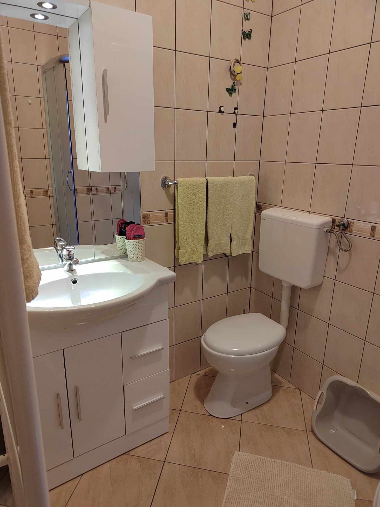 Apartament może przyjąć 6 gości. Łóżka znajdują się w sypialniach, których jest 2, oraz w pokoju dziennym, na powierzchni 55m2. Goście mają dostęp do tarasu, by korzystać z ciepłych, letnich wieczorów. Z apartamentu roztacza się widok na morze. Możliwość przygotowywania posiłków poprzez korzystanie ze wspólnego grilla. Do kwatery można przyjechać ze zwierzęciem domowym, a usługa jest wliczona w cenę wynajęcia kwatery. WLICZONE W CENĘ: taksa pobytowa, sprzątanie końcowe, klimatyzacja, centralne ogrzewanie, parking, internet, pranie bielizny, miejsce do cumowania łodzi, zwierzęta domowe, łóżeczko dziecięce. Dostępność dodatkowych usług w rezerwowanym terminie oraz ich cenę (jeśli nie jest podana) należy sprawdzić wcześniej. Za dodatowe usługi, które nie zostały uwzględnione w kalkulacji ceny, płaci się bezpośrednio właścicielowi obiektu, pod warunkiem śe gość korzysta z tych usług. Zniżki od ceny podstawowej: bezpłatny dzień 14=13 (przy pobycie, trwającym co najmniej 14 dni, otrzymujecie jeden bezpłatny dzień na pobyt do 31.12.2026).
