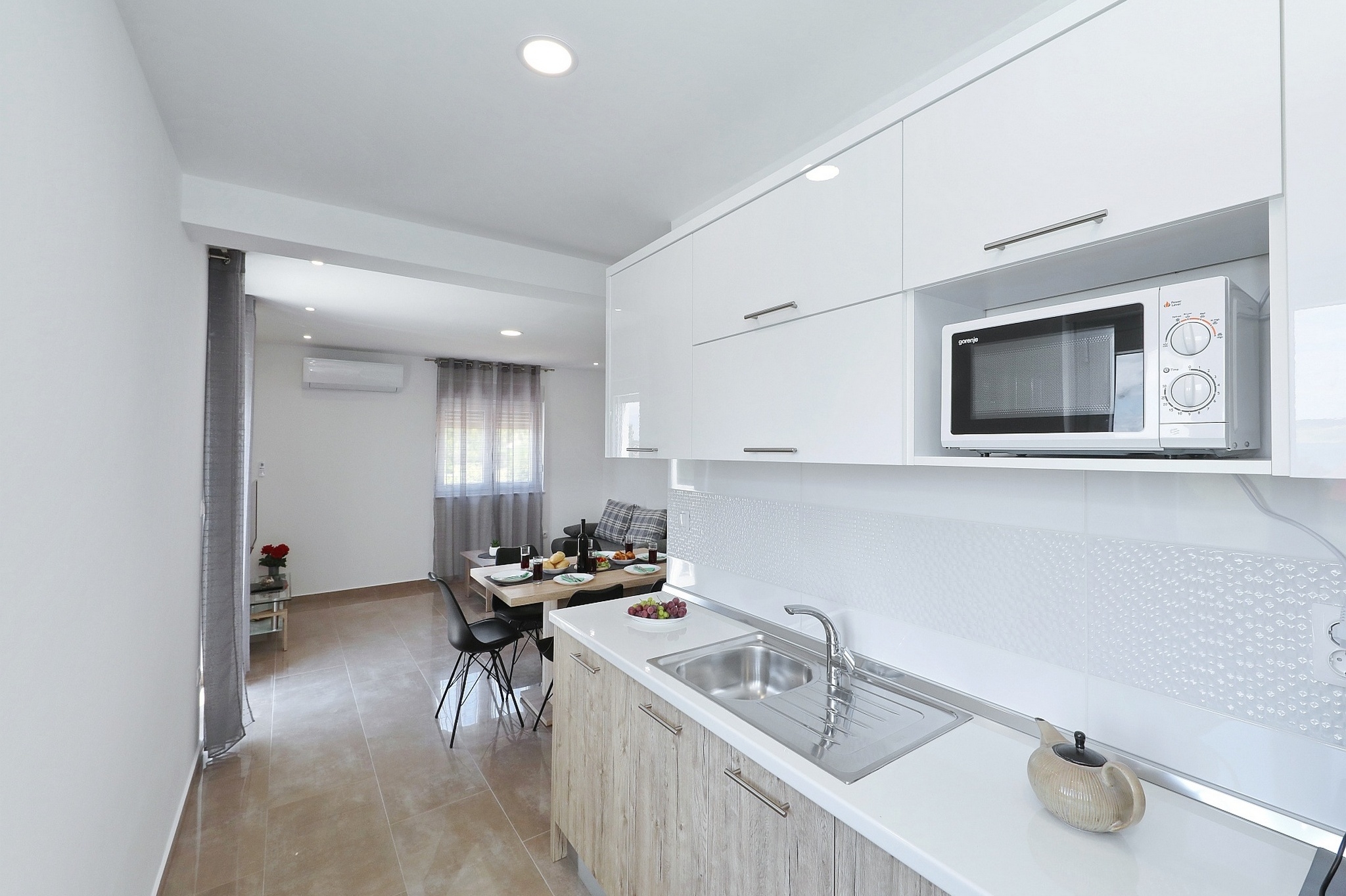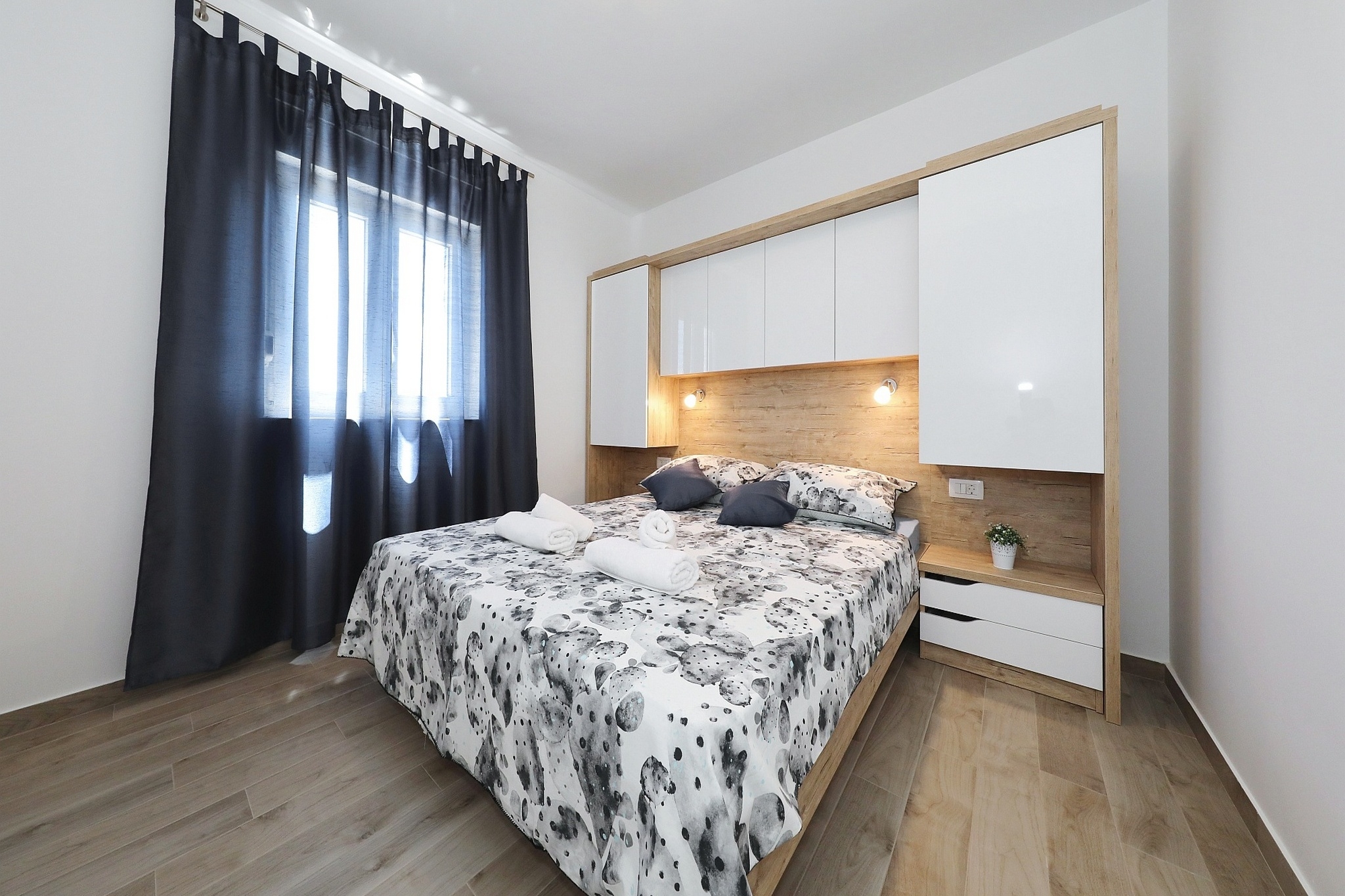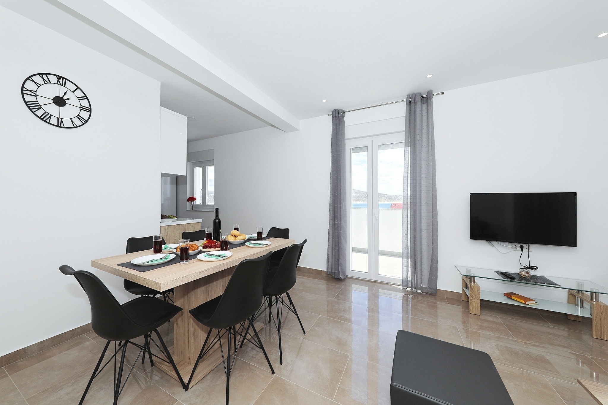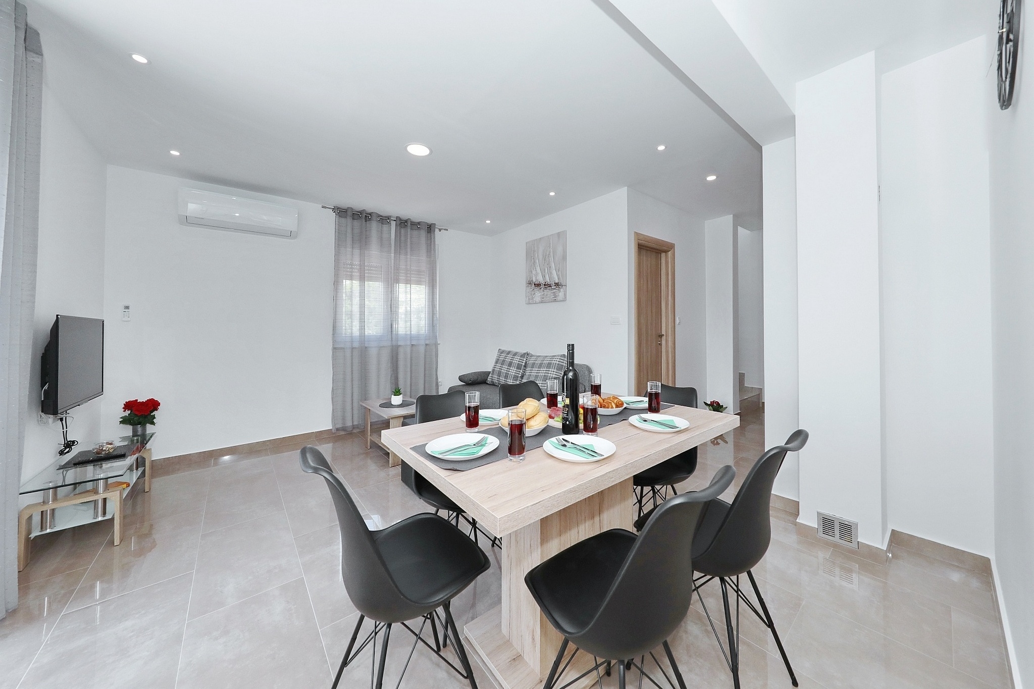 Apartament może przyjąć 6 gości. Łóżka znajdują się w sypialniach, których jest 2, oraz w pokoju dziennym, na powierzchni 59m2. Goście mają dostęp do tarasu, by korzystać z ciepłych, letnich wieczorów. Z apartamentu roztacza się widok na morze. Grill jest dostępny tylko do użytku gości z tej kwatery. W trakcie swojego pobytu goście mogą korzystać ze wspólnego basenu. WLICZONE W CENĘ: taksa pobytowa, sprzątanie końcowe, klimatyzacja, basen, parking, internet, pranie bielizny, łóżeczko dziecięce. Dostępność dodatkowych usług w rezerwowanym terminie oraz ich cenę (jeśli nie jest podana) należy sprawdzić wcześniej. Za dodatowe usługi, które nie zostały uwzględnione w kalkulacji ceny, płaci się bezpośrednio właścicielowi obiektu, pod warunkiem śe gość korzysta z tych usług.