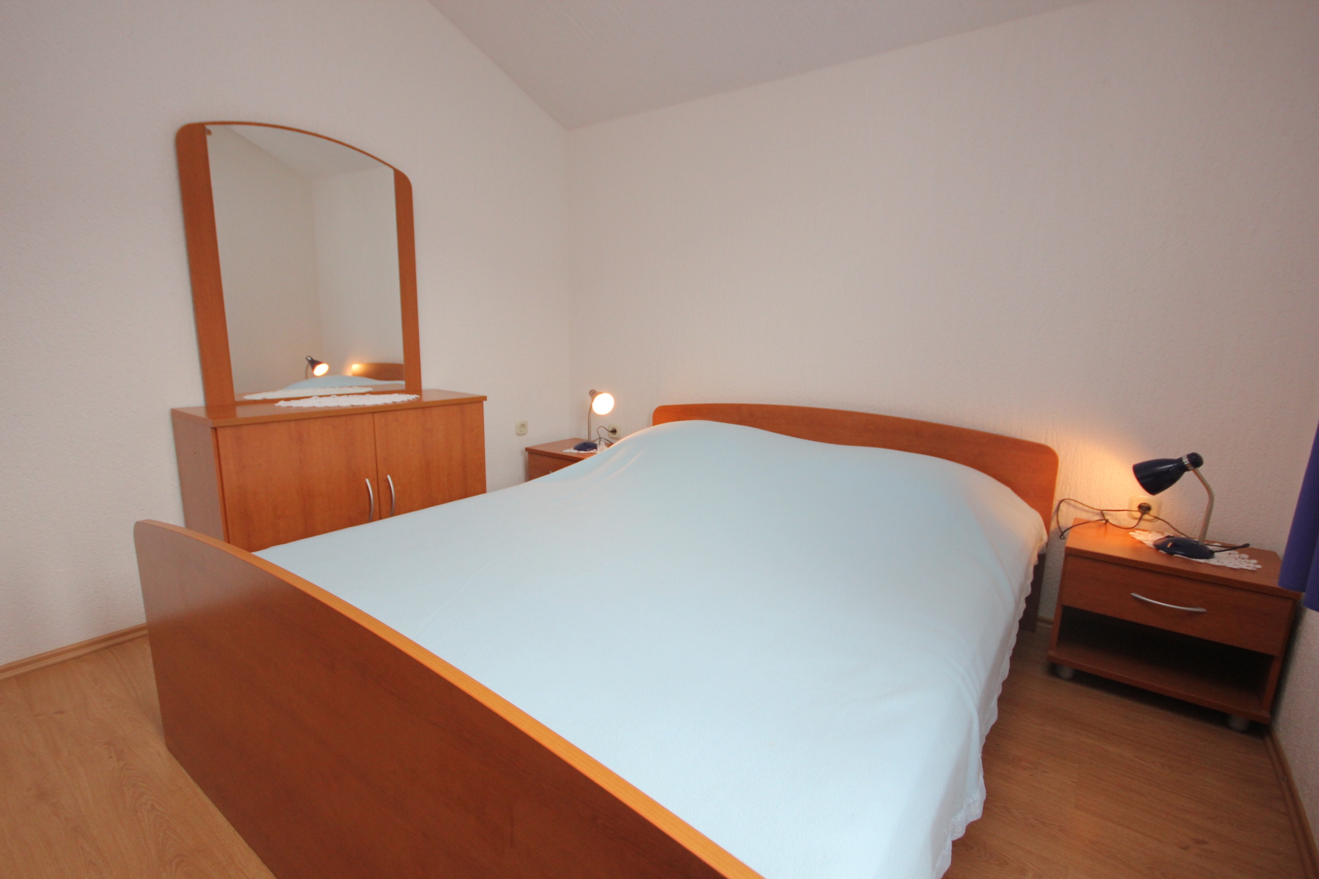 Apartament może przyjąć 4 gości. Łóżka znajdują się w sypialniach, których jest 2, na powierzchni 42m2. Goście mają dostęp do tarasu, by korzystać z ciepłych, letnich wieczorów. Z apartamentu roztacza się widok na morze. Możliwość przygotowywania posiłków poprzez korzystanie ze wspólnego grilla. WLICZONE W CENĘ: taksa pobytowa, sprzątanie końcowe, klimatyzacja, parking, garaż, internet, pranie bielizny, żelazko, deska do prasowania, suszarka do włosów. OBOWIĄZKOWE KOSZTY DODATKOWE: dopłata za krótki termin (procent dopłaty w zalezności od liczby noclegów: 30% - 1, 20% - 2, 10% - 3). Dostępność dodatkowych usług w rezerwowanym terminie oraz ich cenę (jeśli nie jest podana) należy sprawdzić wcześniej. Za dodatowe usługi, które nie zostały uwzględnione w kalkulacji ceny, płaci się bezpośrednio właścicielowi obiektu, pod warunkiem śe gość korzysta z tych usług.