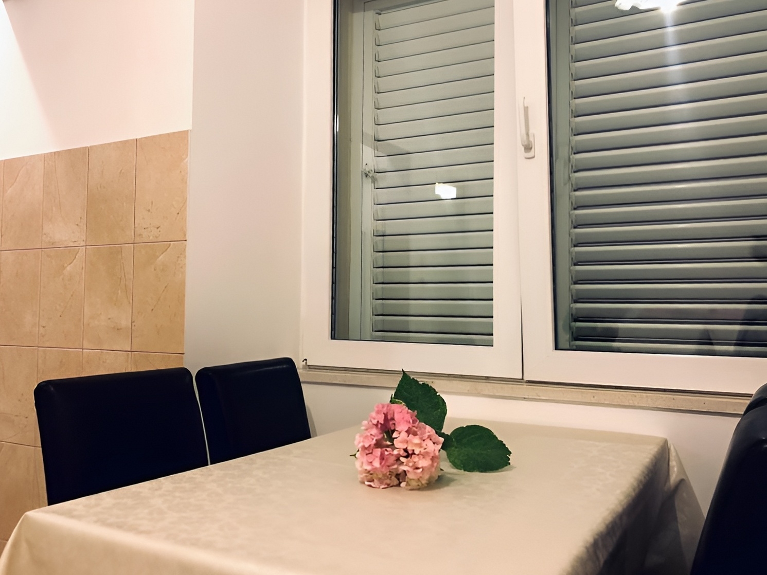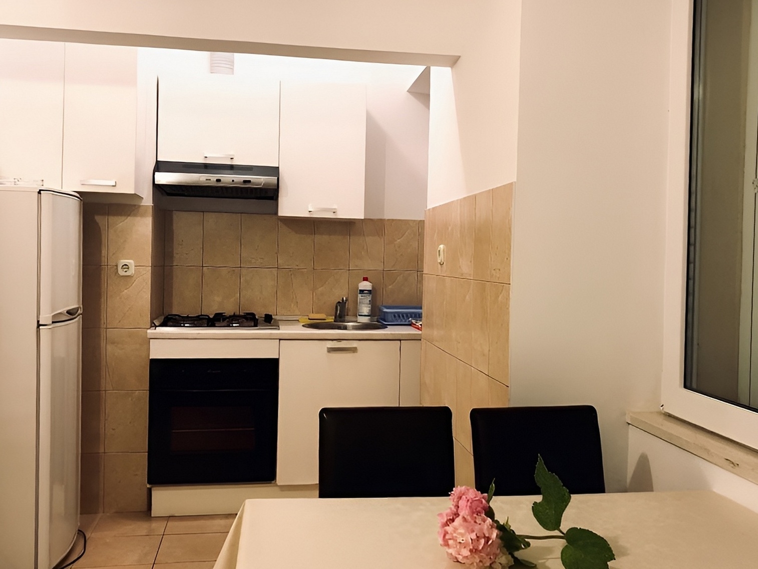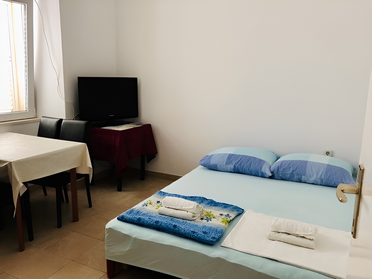 Apartament może przyjąć 4 gości. Łóżka znajdują się w sypialniach, których jest 1, oraz w pokoju dziennym, na powierzchni 38m2. Goście mają dostęp do tarasu, by korzystać z ciepłych, letnich wieczorów. W kwaterze dozwolony jest pobyt zwierzęcia domowego, za dopłatą. WLICZONE W CENĘ: taksa pobytowa, sprzątanie końcowe, klimatyzacja, parking, internet, suszarka do włosów. OBOWIĄZKOWE KOSZTY DODATKOWE: dopłata za krótki termin (procent dopłaty w zalezności od liczby noclegów: 30% - 1, 20% - 2, 10% - 3). NIEOBOWIĄZKOWE KOSZTY DODATKOWE: zwierzęta domowe (3,00 € za nocleg). Dostępność dodatkowych usług w rezerwowanym terminie oraz ich cenę (jeśli nie jest podana) należy sprawdzić wcześniej. Za dodatowe usługi, które nie zostały uwzględnione w kalkulacji ceny, płaci się bezpośrednio właścicielowi obiektu, pod warunkiem śe gość korzysta z tych usług.
