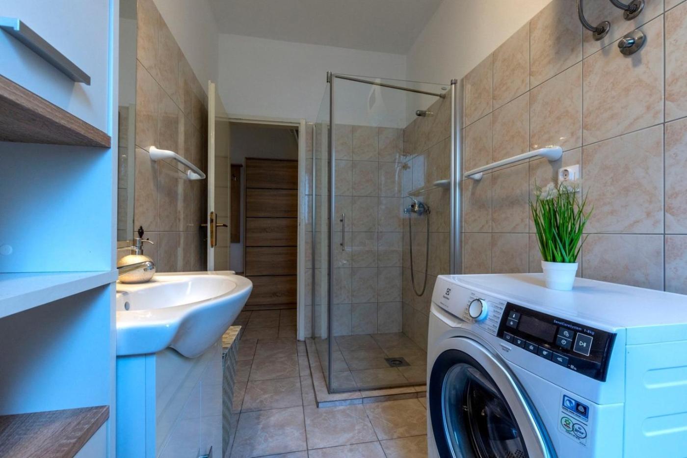 Apartament z 2 sypialniami. This spacious apartment is comprised of 1 living room, 2 separate bedrooms and 1 bathroom with a shower and a hairdryer. The well-fitted kitchen features a stovetop, a refrigerator, a dishwasher and an oven. The air-conditioned apartment offers a TV, a washing machine, a dining area, a barbecue as well as garden views. The unit offers 3 beds. Apartament - 6 osobowy. Powierzchnia pokoju ok.: 75 mkw.