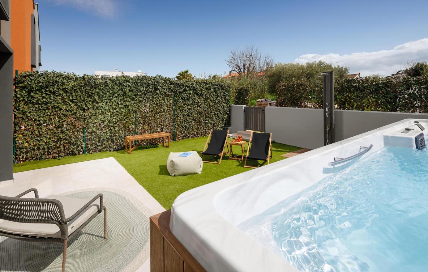 Obiekt Nice Home In Porec With Wifi oferuje centrum spa i odnowy biologicznej z wanną z hydromasażem i krytym basenem.