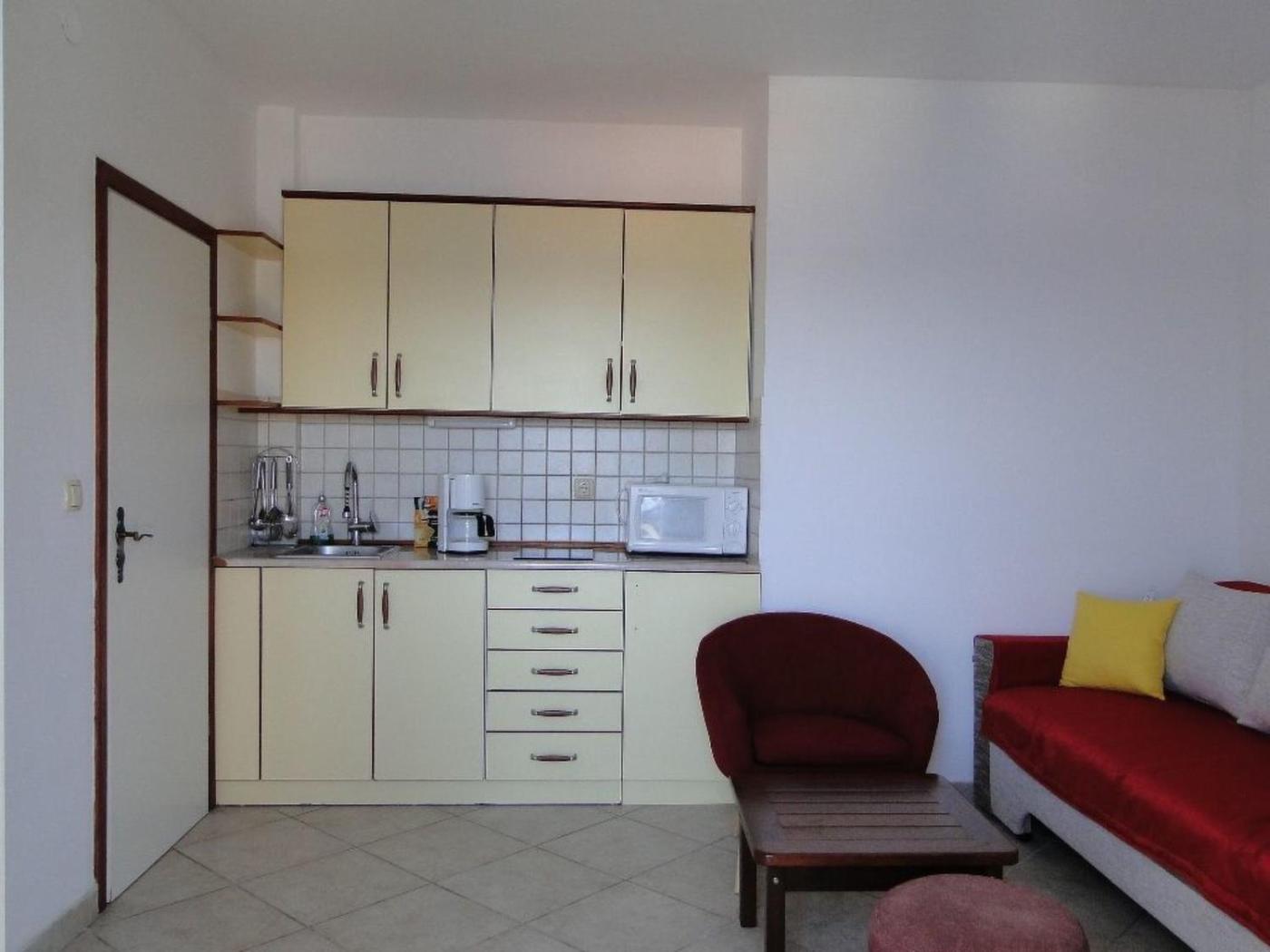 Apartment. This air-conditioned apartment comprises 1 living room, 1 separate bedroom and 1 bathroom with a bath or a shower. The apartments kitchenette, which features a refrigerator and kitchenware, is available for cooking and storing food. Guests can benefit from a terrace and a balcony. The unit offers 2 beds.