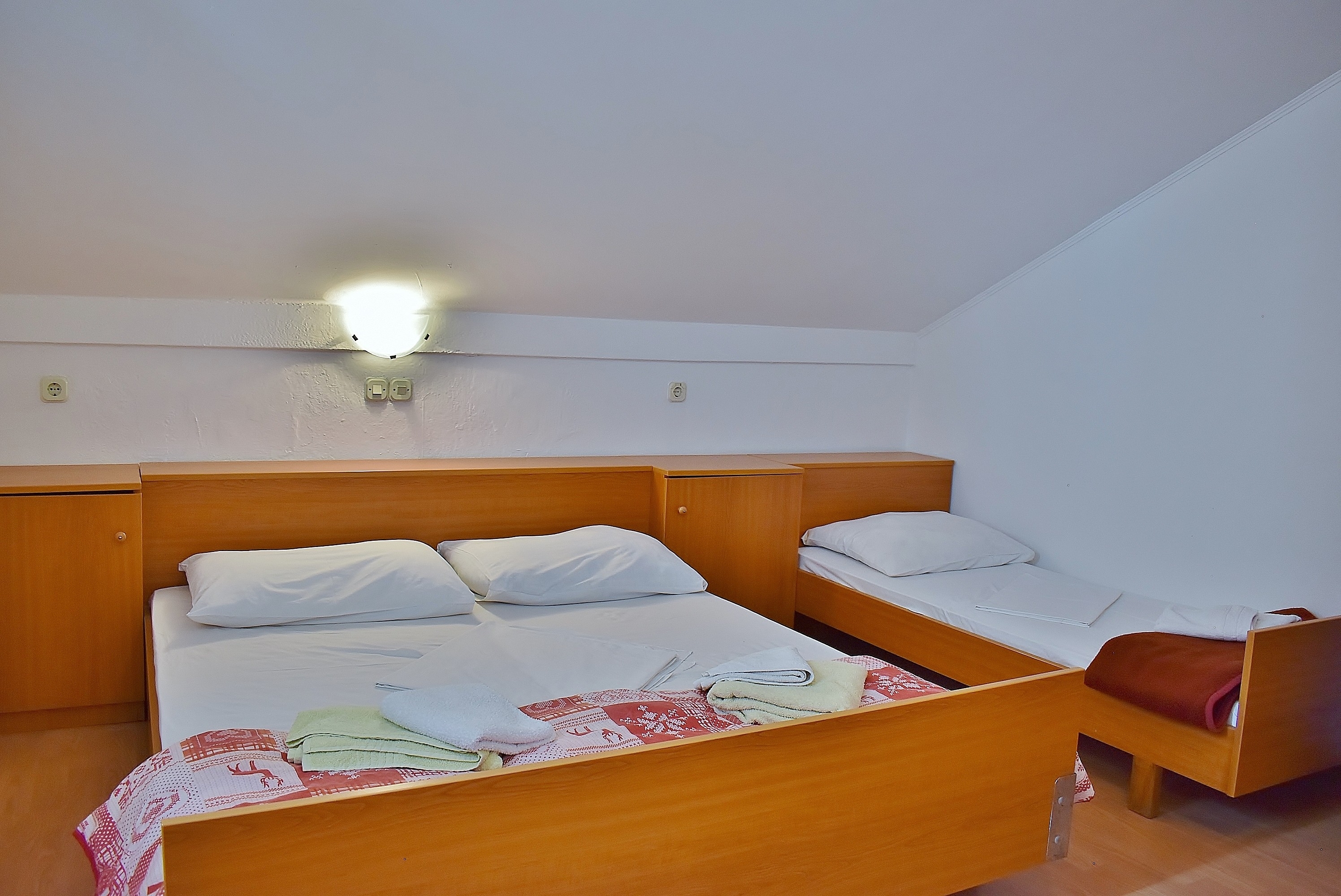 Obiekt 25541 w mieście Banjol, Rab - Kwarner ma kwatery typu Apartament (5) i oddalona jest 110 m od morza. Plaża najbliższa obiektowi jest żwirowa. Dom jest podzielony na kilka kwater, więc będą w nim w czasie Państwa pobytu prawdopodobnie przebywać także inni goście. Gospodarze będą przebywać w obiekcie w czasie Państwa urlopu. Właściciel nie ma obowiązku przyjąć dodatkowych niezgłoszonych osób ani zwierząt domowych, dlatego też trzeba je wcześniej zgłosić.ZAWARTOŚĆ Parking (Liczba miejsc parkingowych: 10, Odległość od obiektu: Na podwórku), Grill: wspólny, WiFi Internet LOKALIZACJA I DOSTĘP Obiekt znajduje się przy lokalnej drodze Pomiędzy obiektem i plażą znajduje się lokalna droga Możliwość dojazdu samochodem: Tak, Droga nieasfaltowana: 80 m Obiekt znajduje się w relatywnie cichej okolicy ODLEGŁOŚCI Morze: 110 m Plaża: 110 m Centrum: 3,5 km Sklep: 240 m Pierwsza pomoc: 3,5 km Apteka: 2,5 km Kantor: 3 km Bankomat: 850 m Informacje turystyczne: 1,8 km Port: 8,5 km Dworzec autobusowy: 3 km Stacja benzynowa: 240 m