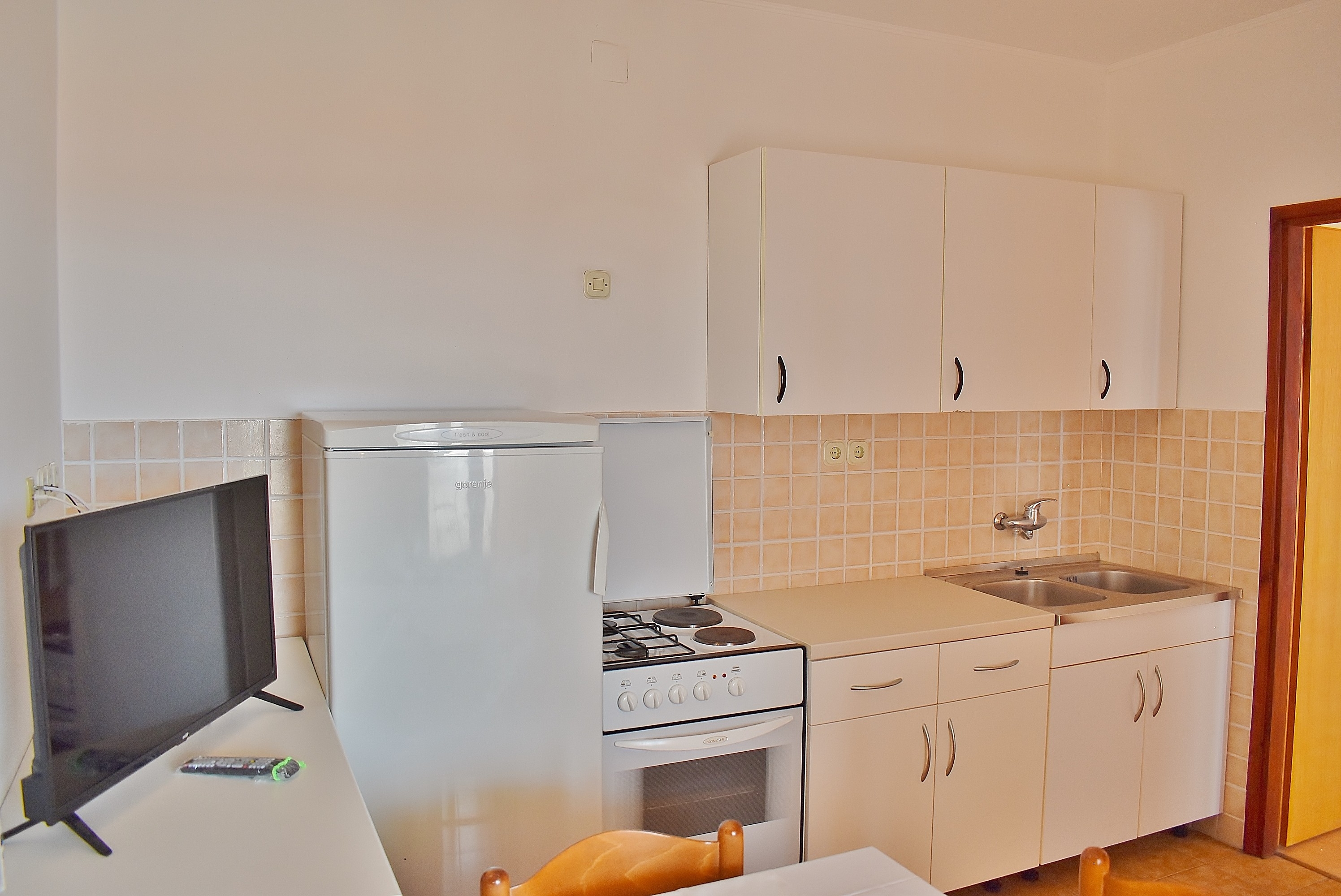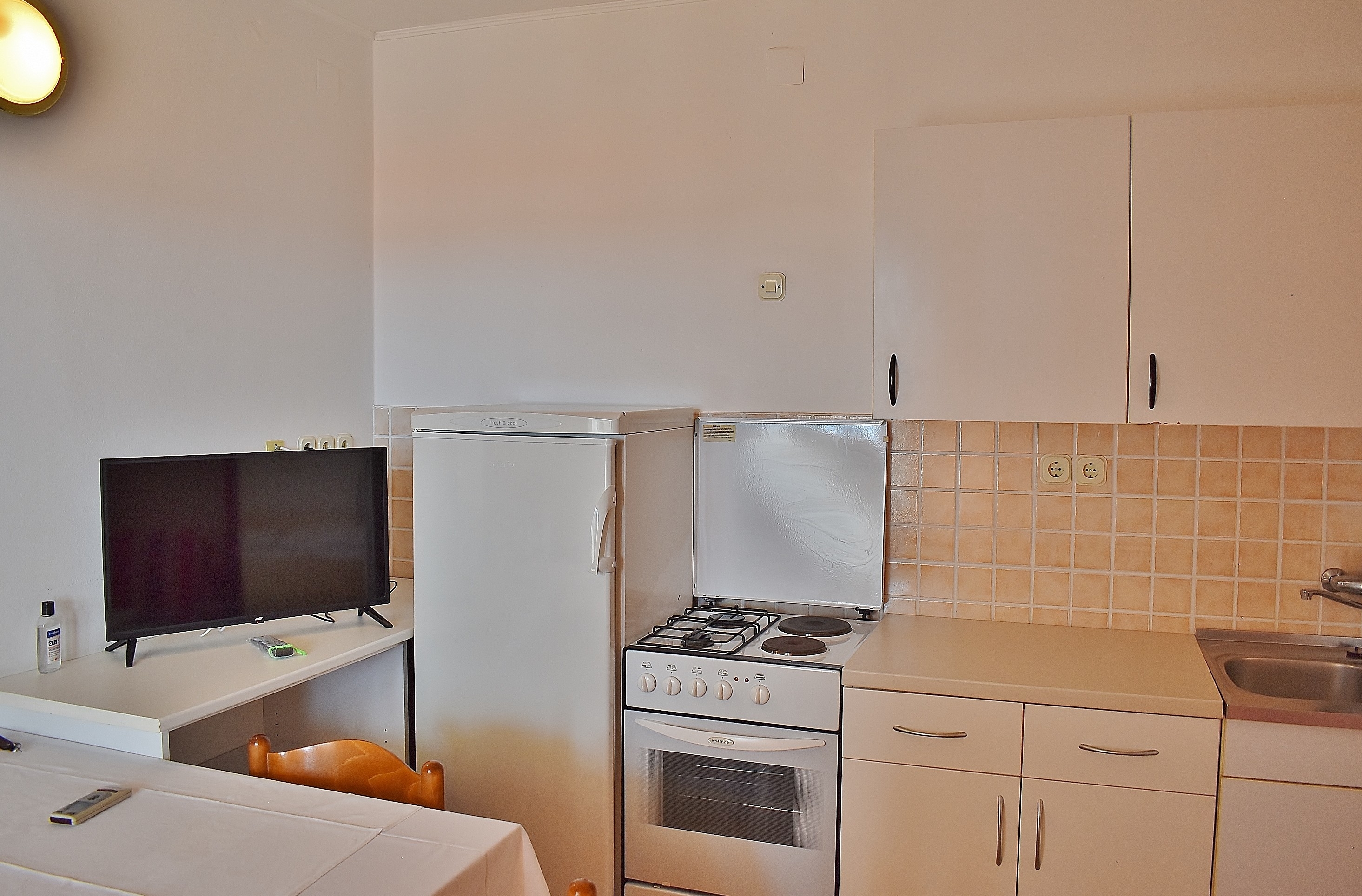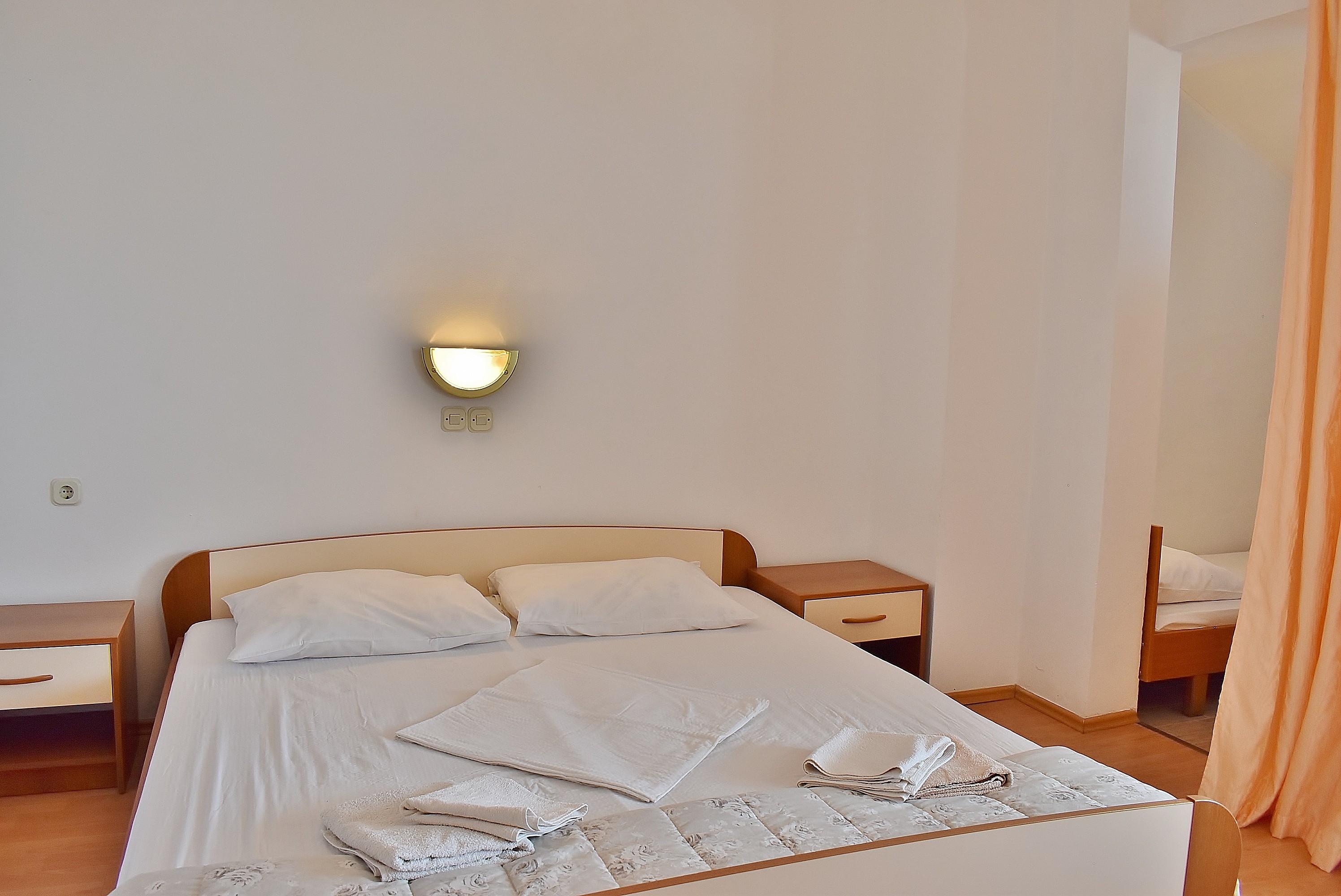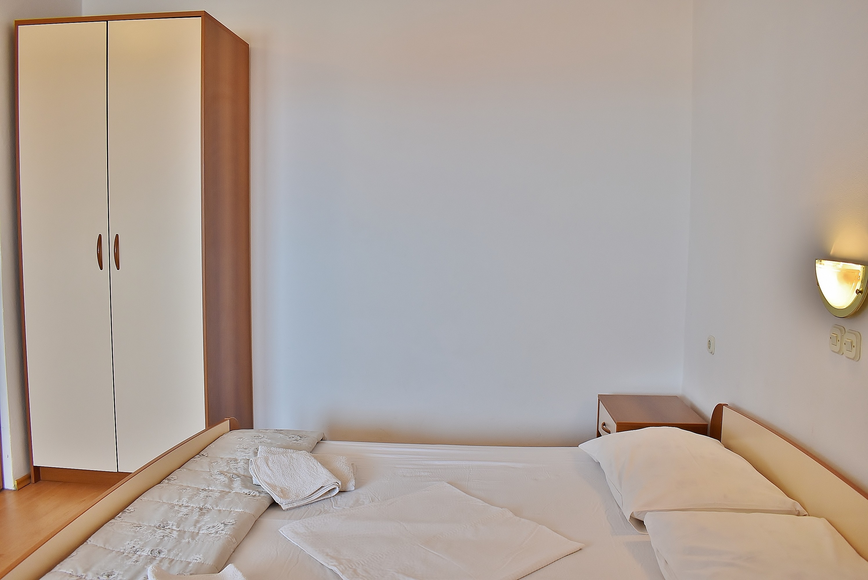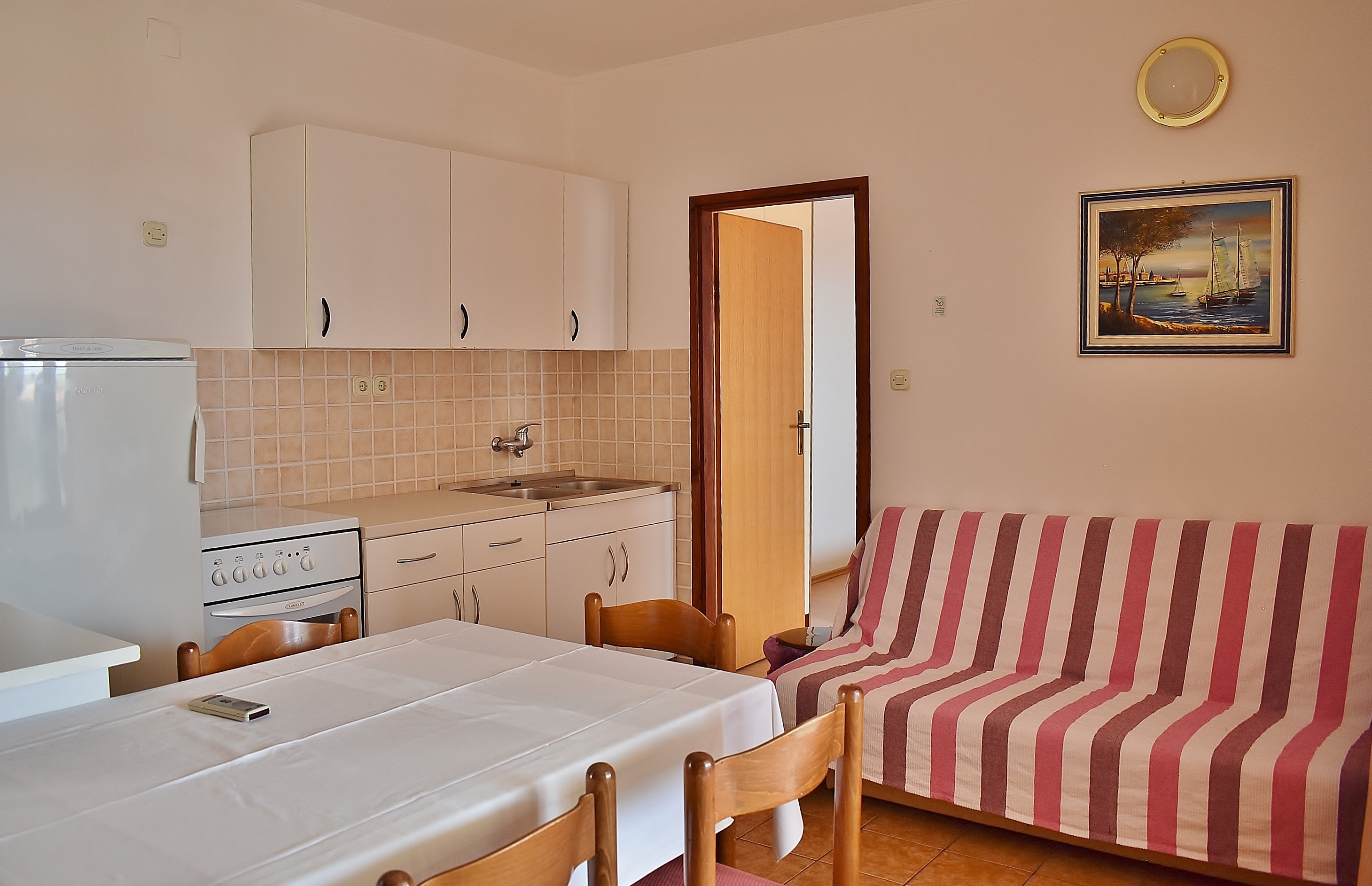 Apartament może przyjąć 6 gości. Łóżka znajdują się w sypialniach, których jest 2, oraz w pokoju dziennym, na powierzchni 50m2. Goście mają dostęp do balkonu, by korzystać z ciepłych, letnich wieczorów. Z apartamentu roztacza się widok na morze. Możliwość przygotowywania posiłków poprzez korzystanie ze wspólnego grilla. W kwaterze dozwolony jest pobyt zwierzęcia domowego, za dopłatą. WLICZONE W CENĘ: taksa pobytowa, sprzątanie końcowe, klimatyzacja, parking, internet. NIEOBOWIĄZKOWE KOSZTY DODATKOWE: zwierzęta domowe (10,00 € za nocleg), dostawka (15,00 € za nocleg). Dostępność dodatkowych usług w rezerwowanym terminie oraz ich cenę (jeśli nie jest podana) należy sprawdzić wcześniej. Za dodatowe usługi, które nie zostały uwzględnione w kalkulacji ceny, płaci się bezpośrednio właścicielowi obiektu, pod warunkiem śe gość korzysta z tych usług.