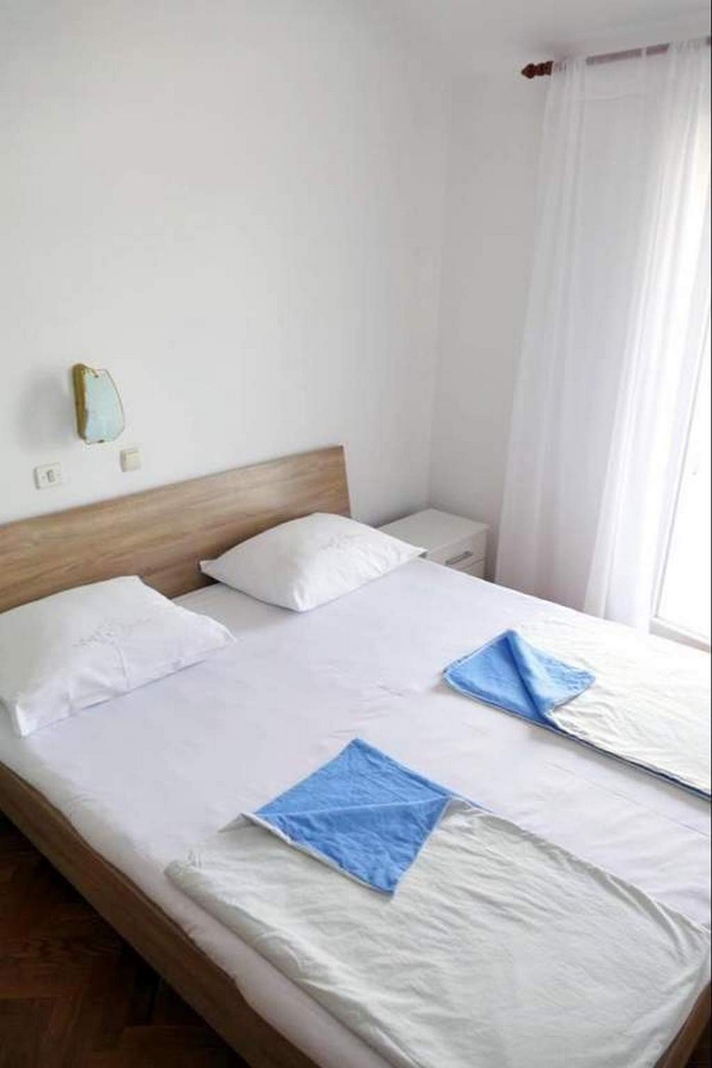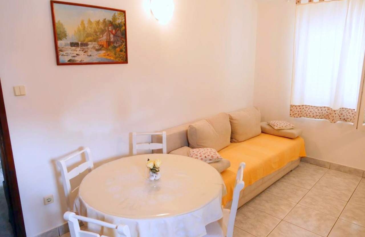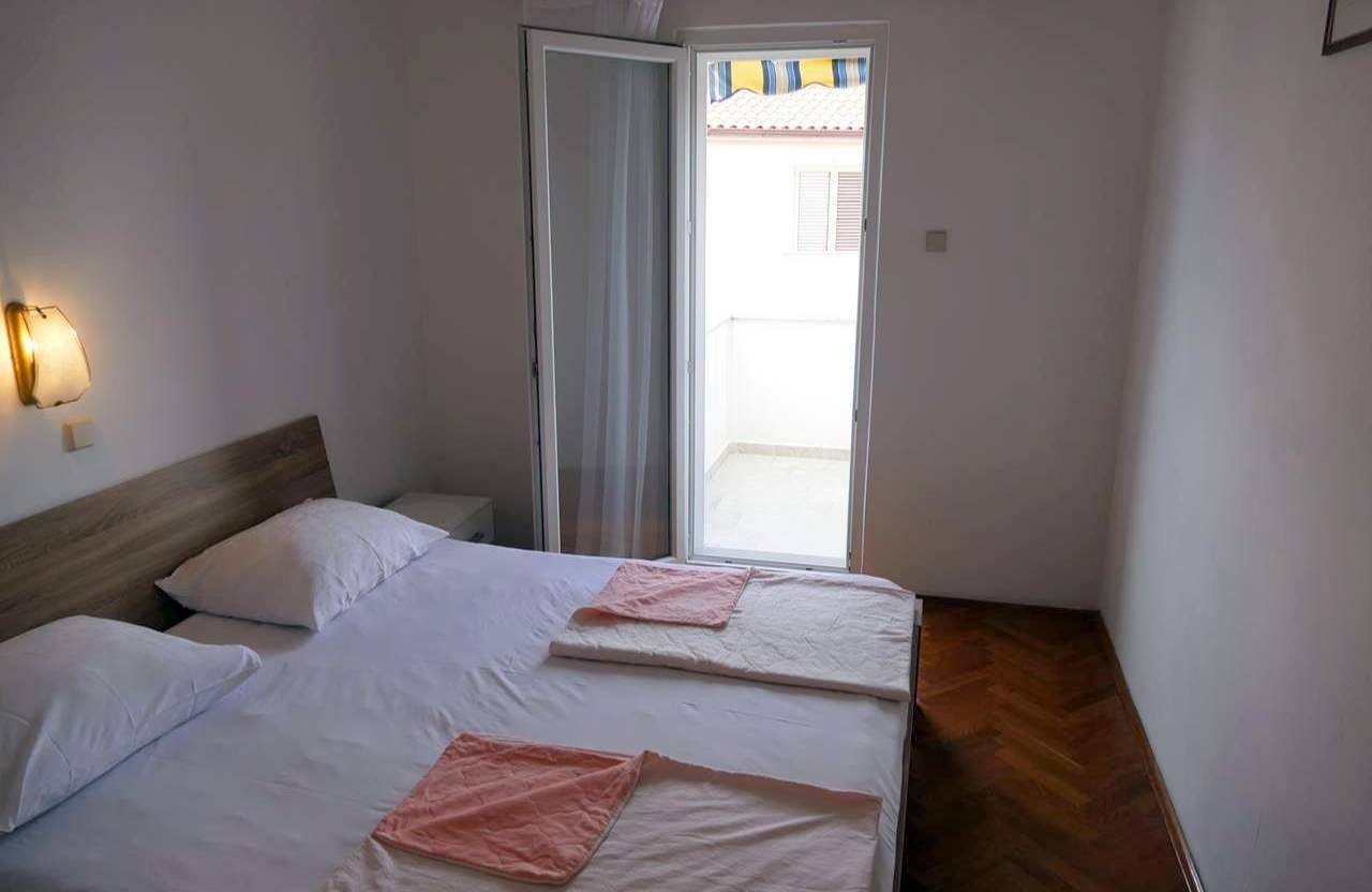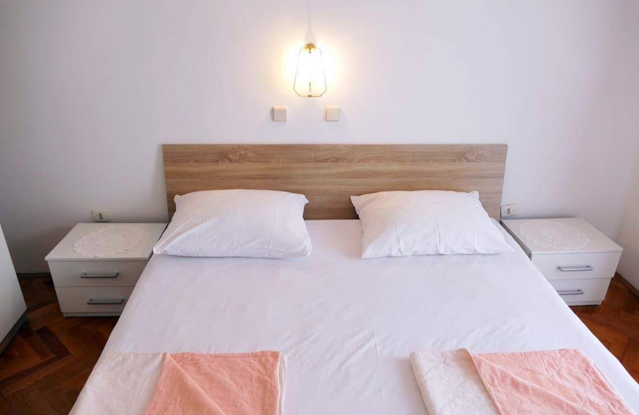Apartament może przyjąć 4 gości. Łóżka znajdują się w sypialniach, których jest 2, na powierzchni 50m2. Goście mają dostęp do tarasu, by korzystać z ciepłych, letnich wieczorów. Z apartamentu roztacza się widok na morze. Możliwość przygotowywania posiłków poprzez korzystanie ze wspólnego grilla. W kwaterze dozwolony jest pobyt zwierzęcia domowego, za dopłatą. WLICZONE W CENĘ: taksa pobytowa, sprzątanie końcowe, parking, internet, miejsce do cumowania łodzi. NIEOBOWIĄZKOWE KOSZTY DODATKOWE: klimatyzacja (3,00 € za nocleg), centralne ogrzewanie (3,00 € za nocleg), zwierzęta domowe (5,00 € za nocleg). Dostępność dodatkowych usług w rezerwowanym terminie oraz ich cenę (jeśli nie jest podana) należy sprawdzić wcześniej. Za dodatowe usługi, które nie zostały uwzględnione w kalkulacji ceny, płaci się bezpośrednio właścicielowi obiektu, pod warunkiem śe gość korzysta z tych usług.