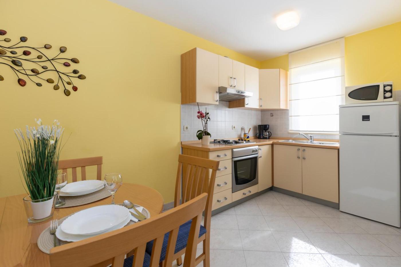 Two-Bedroom Apartment. Featuring a private entrance, this air-conditioned apartment is comprised of 1 living room, 2 separate bedrooms and 1 bathroom with a shower and a bidet. In the well-fitted kitchen, guests will find a stovetop, a refrigerator, kitchenware and an oven. This apartment features a washing machine, flat-screen TV with satellite channels, a quiet street view, as well as winechampagne for guests. The unit offers 4 beds.