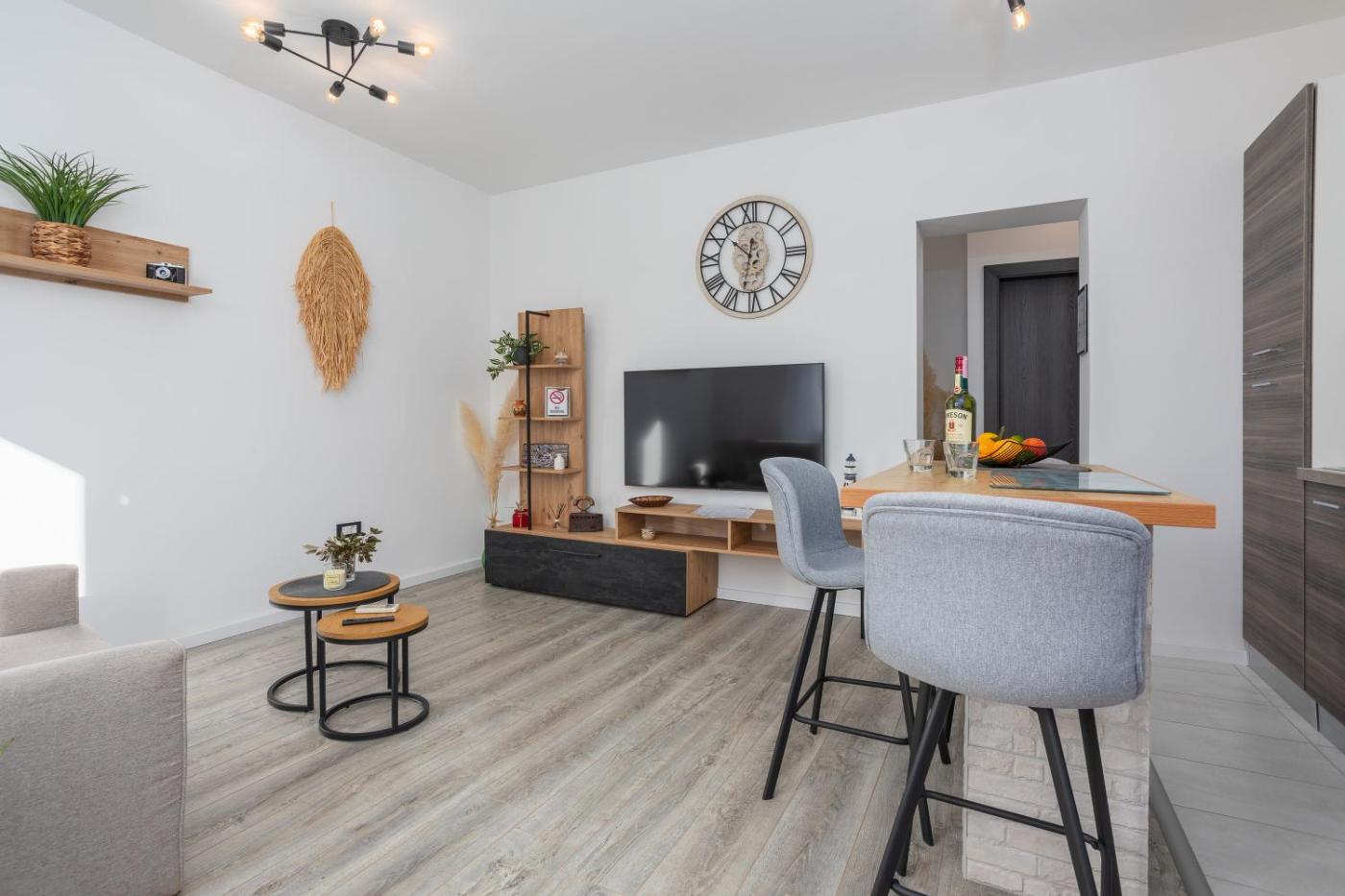 Apartament z 1 sypialnią. Boasting a private entrance, this air-conditioned apartment comes with 1 living room, 1 separate bedroom and 1 bathroom with a shower. Guests will find a stovetop, a refrigerator, kitchenware and an oven in the fully equipped kitchen. The apartment also includes a barbecue. Featuring a terrace with sea views, this apartment also features a coffee machine and a flat-screen TV. The unit has 2 beds. Apartament - 3 osobowy. Powierzchnia pokoju ok.: 38 mkw.