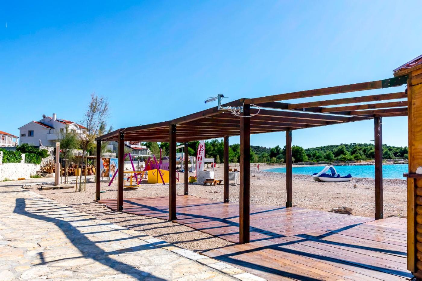 Apartments Suncica is located in Rogoznica, 400 metres from Šepurine Beach, 33 km from Sibenik Town Hall, and 33 km from Barone Fortress. The property is50 km from Salona Archeological Park, 30 km from Water Park Solaris and 33 km from The Church of St Barbara Šibenik. The apartment provides rooms with air conditioning, free private parking and free WiFi.