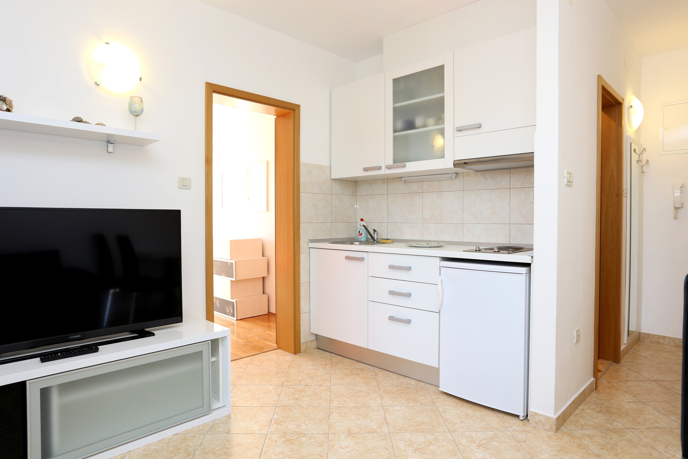 Apartament może przyjąć 3 gości. Łóżka znajdują się w sypialniach, których jest 1, oraz w pokoju dziennym, na powierzchni 29m2. Goście mają dostęp do tarasu, by korzystać z ciepłych, letnich wieczorów. Z apartamentu roztacza się widok na morze. WLICZONE W CENĘ: taksa pobytowa, sprzątanie końcowe, klimatyzacja, parking, internet. OBOWIĄZKOWE KOSZTY DODATKOWE: dopłata za krótki termin (procent dopłaty w zalezności od liczby noclegów: 30% - 1, 20% - 2, 10% - 3). Dostępność dodatkowych usług w rezerwowanym terminie oraz ich cenę (jeśli nie jest podana) należy sprawdzić wcześniej. Za dodatowe usługi, które nie zostały uwzględnione w kalkulacji ceny, płaci się bezpośrednio właścicielowi obiektu, pod warunkiem śe gość korzysta z tych usług.