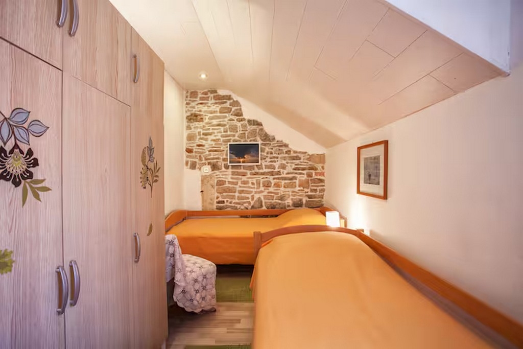 Apartament może przyjąć 4 gości. Łóżka znajdują się w sypialniach, których jest 2, na powierzchni 90m2. Goście mają dostęp do tarasu, by korzystać z ciepłych, letnich wieczorów. Grill jest dostępny tylko do użytku gości z tej kwatery. W trakcie swojego pobytu goście mogą zrelakswować się w prywatnym basenie. W kwaterze dozwolony jest pobyt zwierzęcia domowego, za dopłatą. WLICZONE W CENĘ: taksa pobytowa, sprzątanie końcowe, klimatyzacja, basen, parking, internet, łóżeczko dziecięce, żelazko, deska do prasowania, suszarka do włosów, parasol. NIEOBOWIĄZKOWE KOSZTY DODATKOWE: zwierzęta domowe (5,00 € za nocleg). Dostępność dodatkowych usług w rezerwowanym terminie oraz ich cenę (jeśli nie jest podana) należy sprawdzić wcześniej. Za dodatowe usługi, które nie zostały uwzględnione w kalkulacji ceny, płaci się bezpośrednio właścicielowi obiektu, pod warunkiem śe gość korzysta z tych usług. Zniżki od ceny podstawowej: bezpłatny dzień 14=13 (przy pobycie, trwającym co najmniej 14 dni, otrzymujecie jeden bezpłatny dzień na pobyt do 31.12.2026).