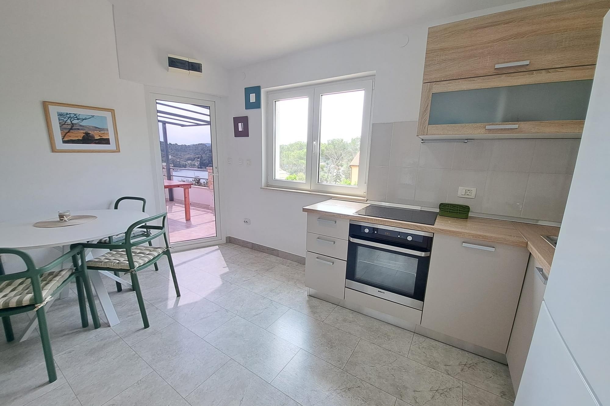 Apartament może przyjąć 4 gości. Łóżka znajdują się w sypialniach, których jest 2, na powierzchni 42m2. Goście mają dostęp do tarasu, by korzystać z ciepłych, letnich wieczorów. Z apartamentu roztacza się widok na morze. Możliwość przygotowywania posiłków poprzez korzystanie ze wspólnego grilla. WLICZONE W CENĘ: taksa pobytowa, sprzątanie końcowe, klimatyzacja, parking, internet, łóżeczko dziecięce, suszarka do włosów. Dostępność dodatkowych usług w rezerwowanym terminie oraz ich cenę (jeśli nie jest podana) należy sprawdzić wcześniej. Za dodatowe usługi, które nie zostały uwzględnione w kalkulacji ceny, płaci się bezpośrednio właścicielowi obiektu, pod warunkiem śe gość korzysta z tych usług. Zniżki od ceny podstawowej: bezpłatny dzień 14=13 (przy pobycie, trwającym co najmniej 14 dni, otrzymujecie jeden bezpłatny dzień na pobyt do 31.12.2026).