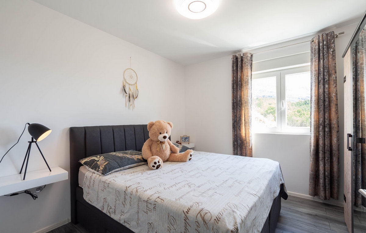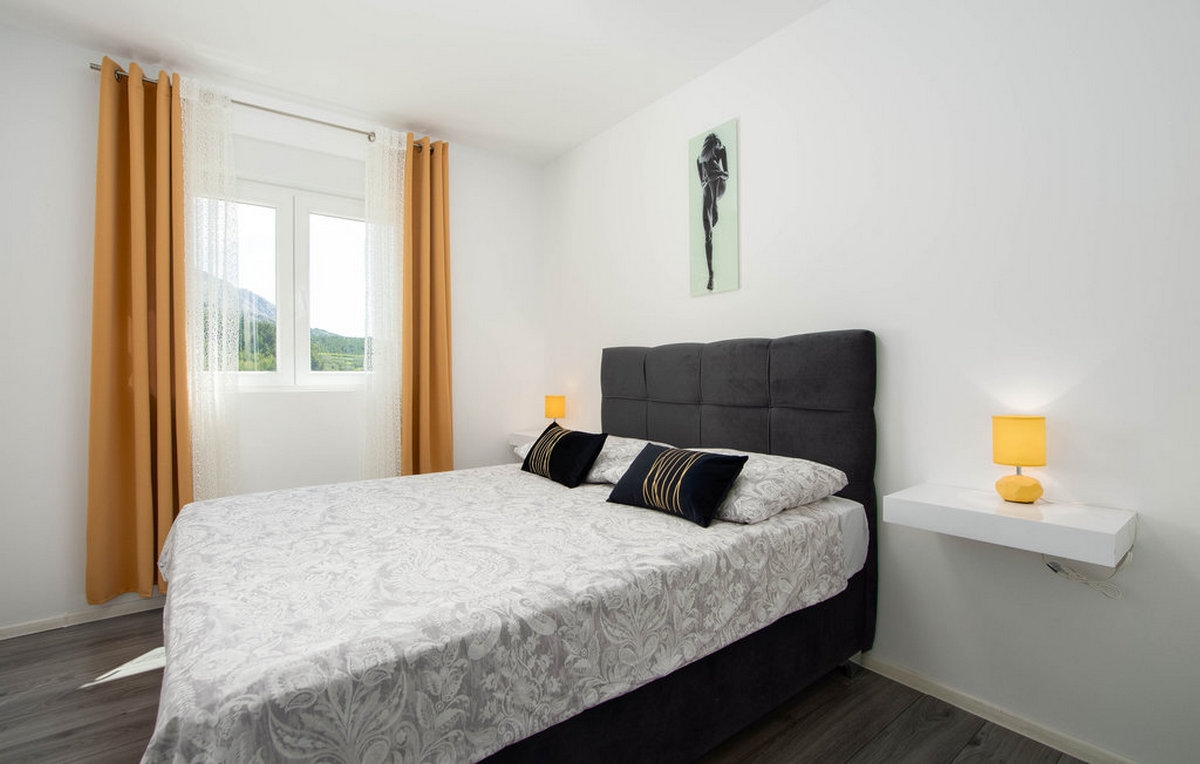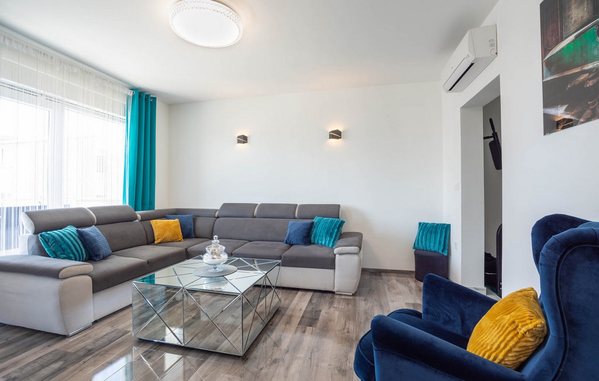 Apartament może przyjąć 8 gości. Łóżka znajdują się w sypialniach, których jest 3, oraz w pokoju dziennym, na powierzchni 114m2. Goście mają dostęp do tarasu, by korzystać z ciepłych, letnich wieczorów. Z apartamentu roztacza się widok na morze. Możliwość przygotowywania posiłków poprzez korzystanie ze wspólnego grilla. WLICZONE W CENĘ: taksa pobytowa, sprzątanie końcowe, klimatyzacja, parking, internet, łóżeczko dziecięce, dostawka, żelazko, deska do prasowania, suszarka do włosów. Dostępność dodatkowych usług w rezerwowanym terminie oraz ich cenę (jeśli nie jest podana) należy sprawdzić wcześniej. Za dodatowe usługi, które nie zostały uwzględnione w kalkulacji ceny, płaci się bezpośrednio właścicielowi obiektu, pod warunkiem śe gość korzysta z tych usług.