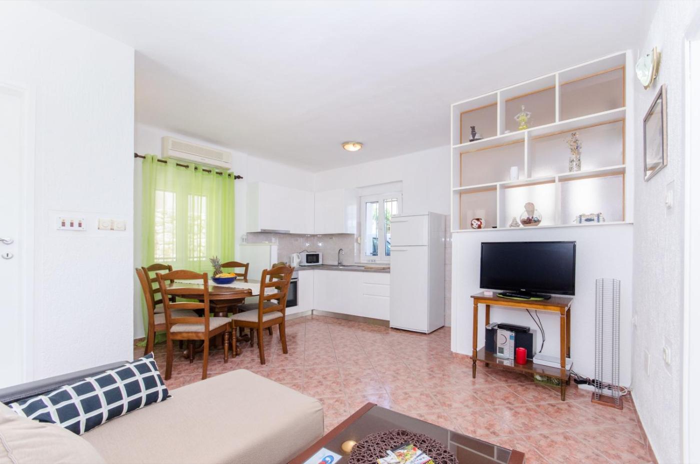 Apartament – parter. Boasting a private entrance, this air-conditioned apartment features 1 living room, 1 separate bedroom and 1 bathroom with a shower and a hairdryer. Guests can make meals in the kitchen that has a stovetop, a refrigerator, kitchenware and an oven. The apartment features a flat-screen TV with cable channels, a washing machine, a seating area, a dining area as well as a quiet street view. The unit has 3 beds. Apartament - 4 osobowy. Powierzchnia pokoju ok.: 40 mkw. ;