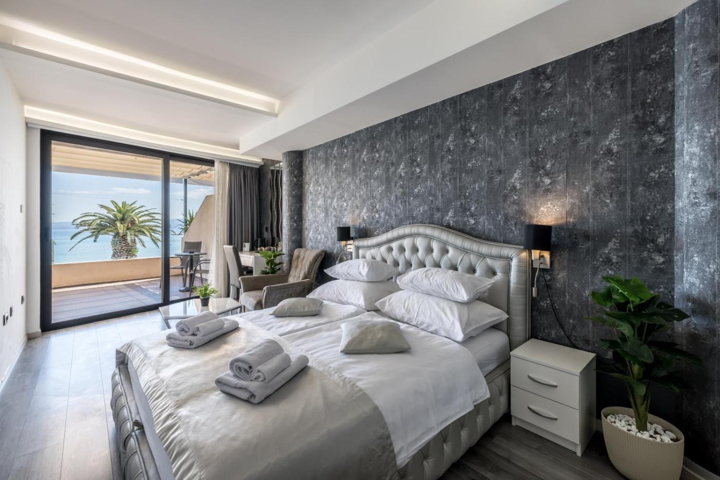 Deluxe King Room. The spacious double room offers air conditioning, a private entrance, a terrace with sea views as well as a private bathroom boasting a walk-in shower. The unit has 1 bed. ;