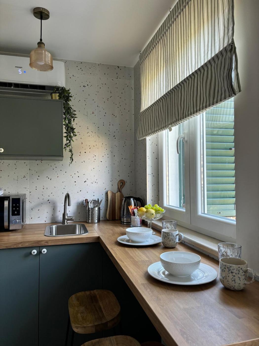 Apartament z 1 sypialnią. Boasting a private entrance, this air-conditioned apartment includes a kitchenette, 1 bedroom and 1 bathroom with a shower and a hairdryer. The kitchenette has a microwave, a toaster and an electric kettle. The apartment offers a seating area, a dining area, a wardrobe, a flat-screen TV with streaming services, as well as city views. The unit has 1 bed. Apartament - 2 osobowy. Powierzchnia pokoju ok.: 18 mkw.