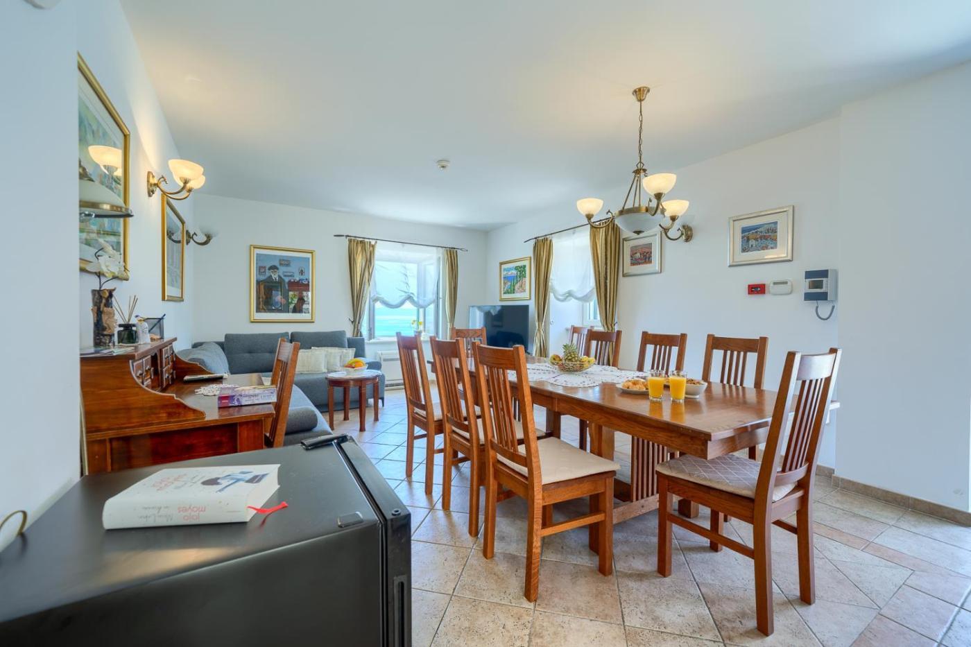 W willi znajduje się telewizor. Kuchnię wyposażono w lodówkę, zmywarkę i mikrofalówkę.