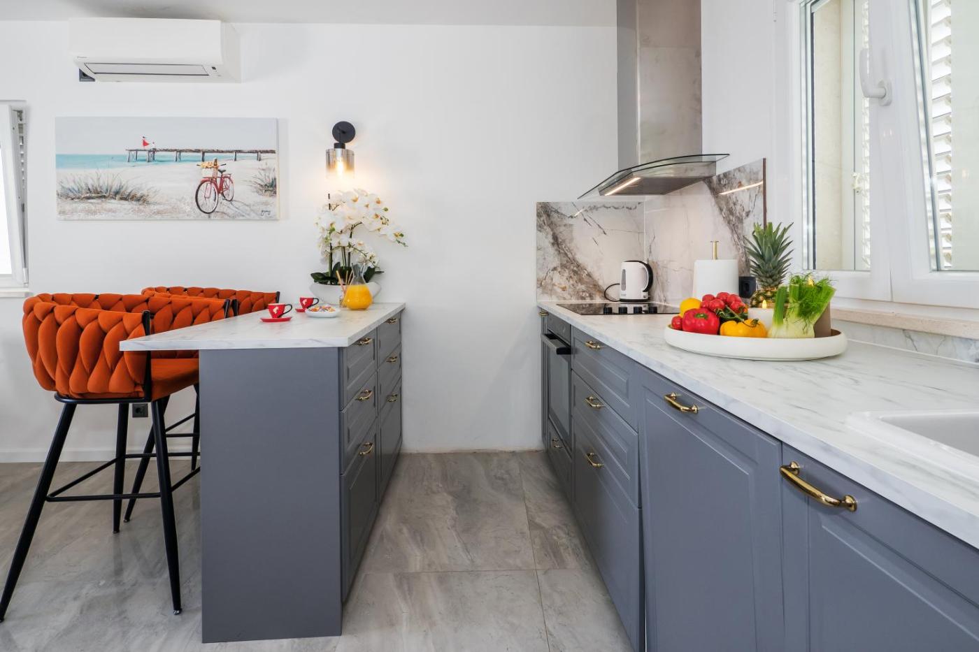 W apartamencie zapewniono taras, kilka sypialni (2), salon z telewizorem z płaskim ekranem, kuchnię ze standardowym wyposażeniem, takim jak lodówka i zmywarka, a także łazienkę (1) z prysznicem. Goście mogą podziwiać widok na morze.