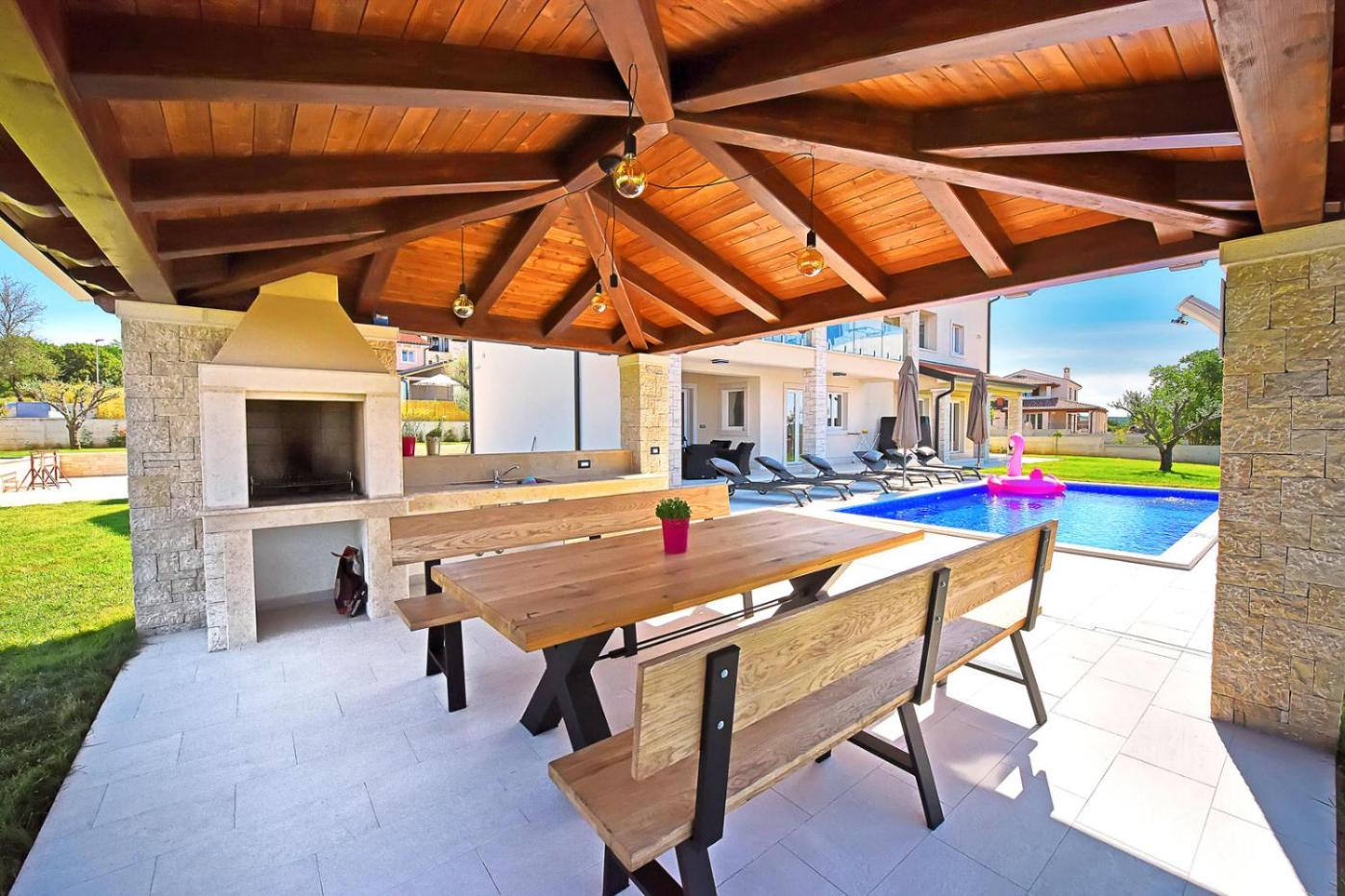Obiekt Belvedere położony jest w miejscowości Sveti Lovreč Pazenatički i oferuje sezonowy odkryty basen oraz klimatyzację. Odległość ważnych miejsc od obiektu: Kościół św. Eufemii w Rovinju – 26 km, Park wodny Istralandia – 30 km. Oferta apartamentu obejmuje prywatny basen, ogród, sprzęt do grillowania, bezpłatne Wi-Fi oraz bezpłatny prywatny parking.
