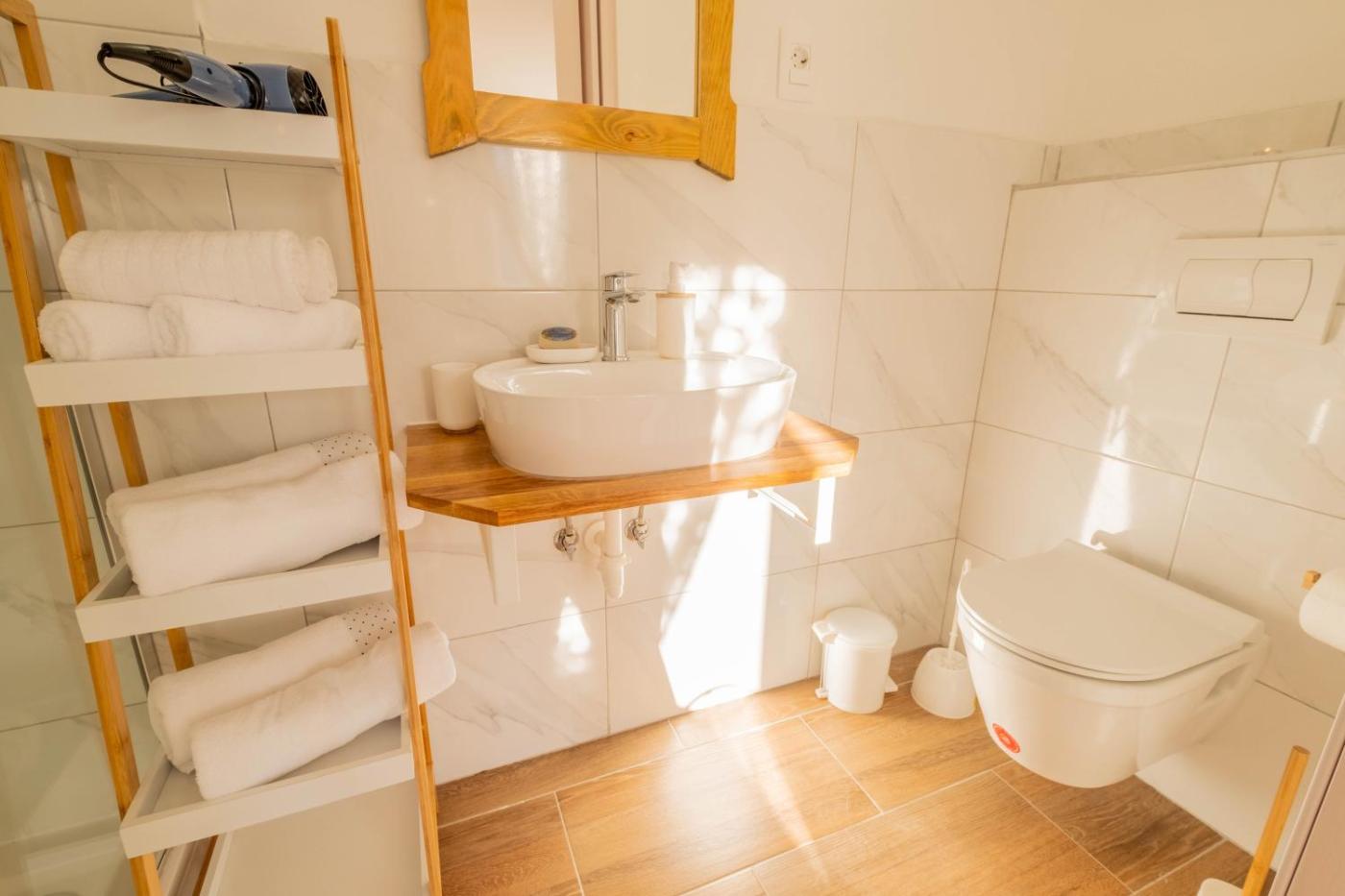 Willa. Guests will have a special experience as this villa provides a pool with a view and a sauna. Featuring a private entrance, this air-conditioned villa is comprised of 1 living room, 3 separate bedrooms and 4 bathrooms with a shower and a hairdryer. Guests will find a stovetop, a refrigerator, a dishwasher and kitchenware in the kitchen. The villa also has a barbecue. Boasting a terrace with lake views, this villa also offers a washing machine and a flat-screen TV with satellite channels. The unit offers 5 beds. Willa - 8 osobowy. Powierzchnia pokoju ok.: 16 mkw.