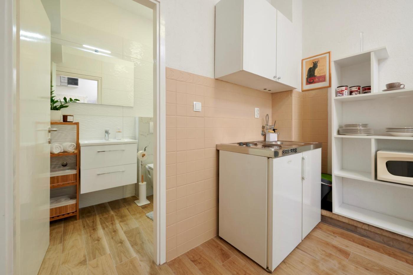 Apartament z 1 sypialnią. This air-conditioned apartment features: - a flat-screen TV - a kitchenette with a dining area - a bathroom with shower and a washing machine Apartament - 2 osobowy. Powierzchnia pokoju ok.: 30 mkw.