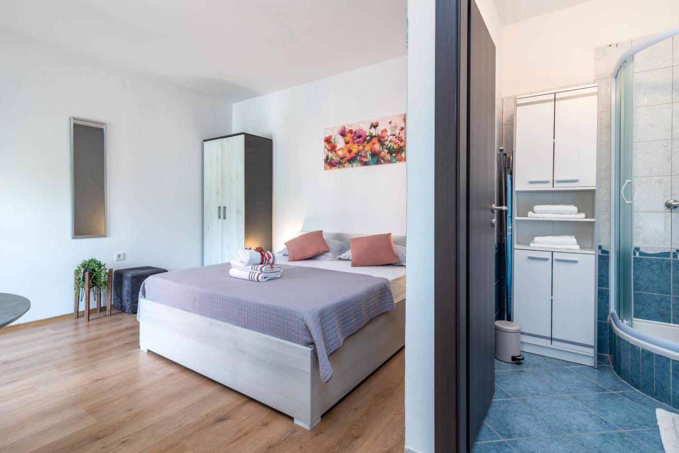 Apartament typu studio. Featuring a private entrance, this air-conditioned apartment comprises a kitchen, 1 bedroom and 1 bathroom with a bath or a shower and a hairdryer. The well-equipped kitchen has a stovetop, a refrigerator, kitchenware and a microwave. This apartment features a dining area, flat-screen TV with satellite channels, sea views, as well as chocolate for guests. The unit offers 1 bed. Apartament - 2 osobowy. Powierzchnia pokoju ok.: 20 mkw.