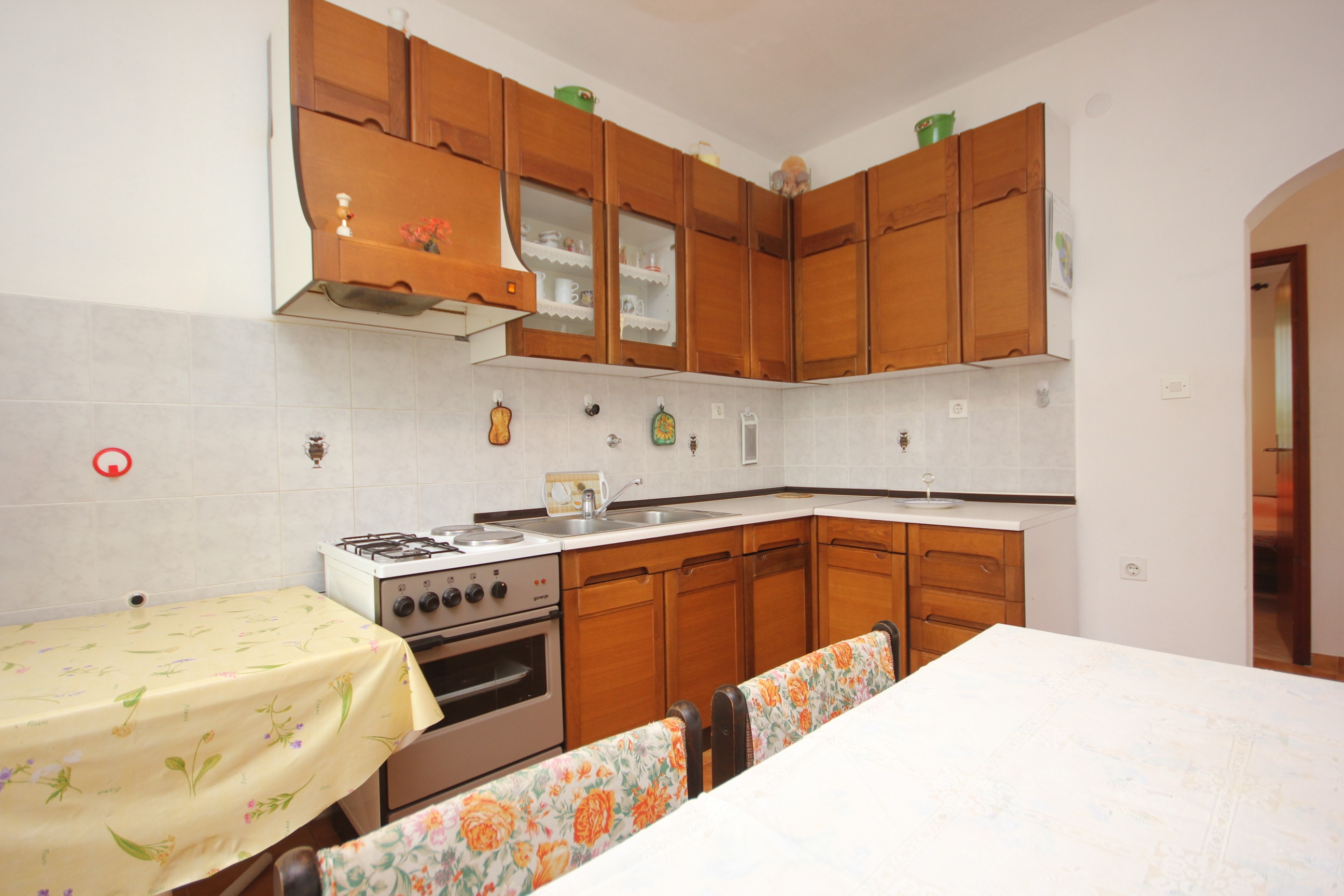 Apartament może przyjąć 4 gości. Łóżka znajdują się w sypialniach, których jest 2, na powierzchni 43m2. Goście mają dostęp do tarasu, by korzystać z ciepłych, letnich wieczorów. Z apartamentu roztacza się widok na morze. Możliwość przygotowywania posiłków poprzez korzystanie ze wspólnego grilla. WLICZONE W CENĘ: taksa pobytowa, sprzątanie końcowe, parking, internet, miejsce do cumowania łodzi, żelazko, deska do prasowania, suszarka do włosów. NIEOBOWIĄZKOWE KOSZTY DODATKOWE: klimatyzacja (5,00 € za nocleg). Dostępność dodatkowych usług w rezerwowanym terminie oraz ich cenę (jeśli nie jest podana) należy sprawdzić wcześniej. Za dodatowe usługi, które nie zostały uwzględnione w kalkulacji ceny, płaci się bezpośrednio właścicielowi obiektu, pod warunkiem śe gość korzysta z tych usług. Zniżki od ceny podstawowej: bezpłatny dzień 14=13 (przy pobycie, trwającym co najmniej 14 dni, otrzymujecie jeden bezpłatny dzień na pobyt do 31.12.2026).