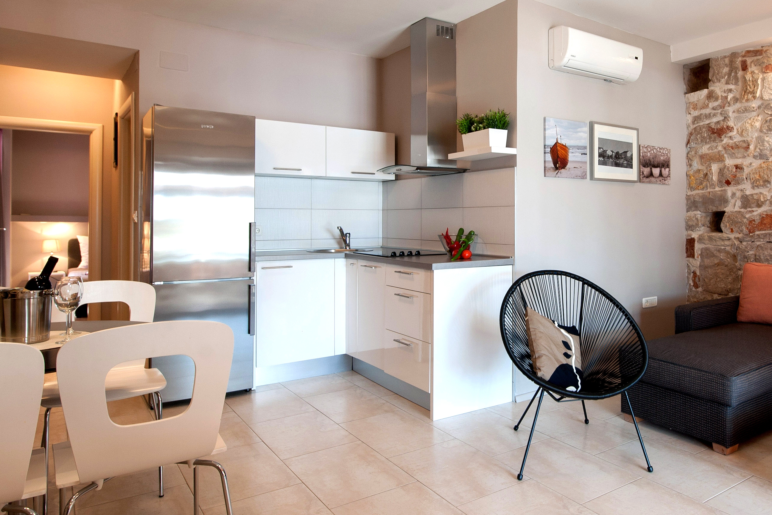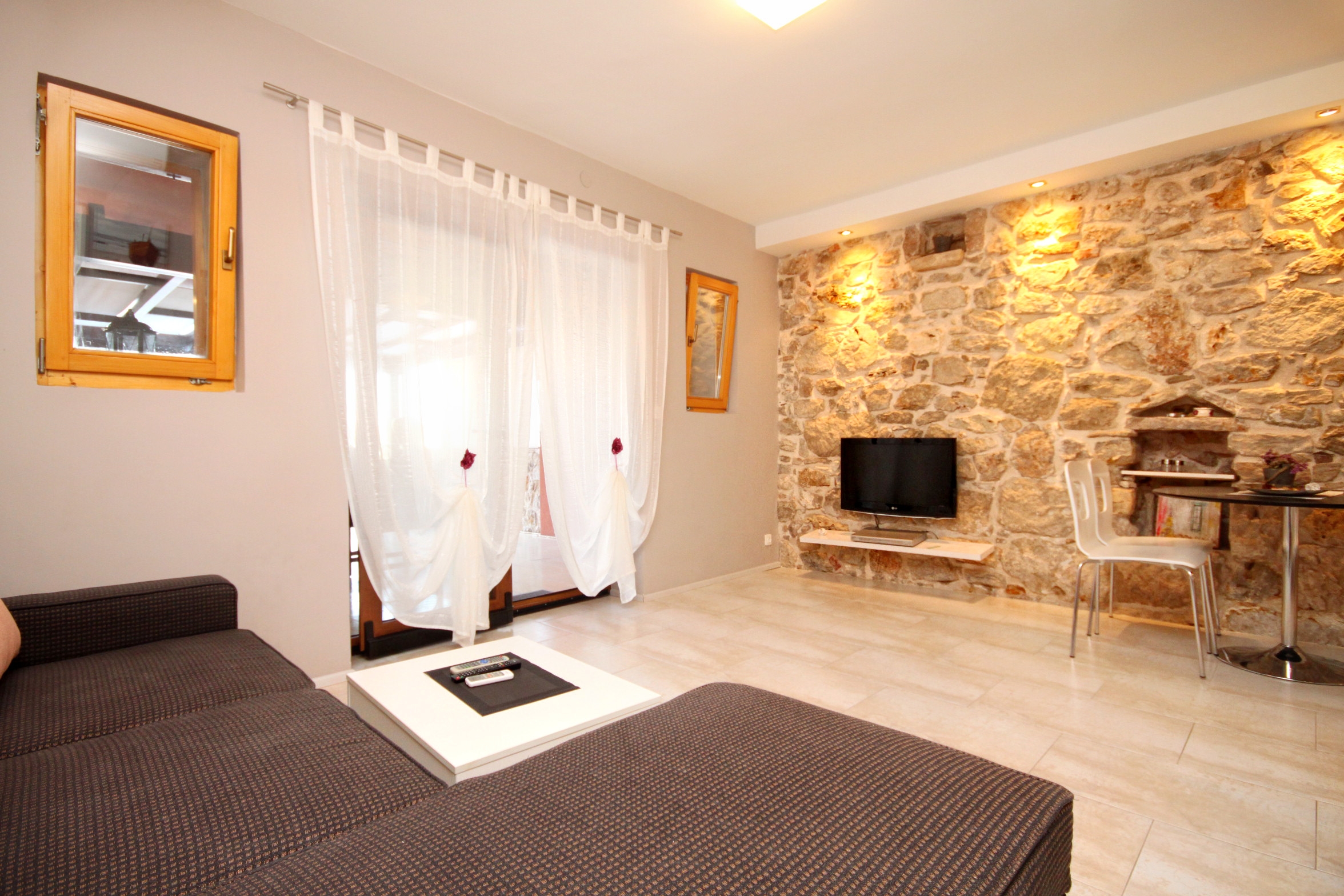 Apartament może przyjąć 4 gości. Łóżka znajdują się w sypialniach, których jest 2, na powierzchni 50m2. Goście mają dostęp do tarasu, by korzystać z ciepłych, letnich wieczorów. Z apartamentu roztacza się widok na morze. Możliwość przygotowywania posiłków poprzez korzystanie ze wspólnego grilla. WLICZONE W CENĘ: taksa pobytowa, sprzątanie końcowe, klimatyzacja, internet, pranie bielizny, miejsce do cumowania łodzi, łóżeczko dziecięce, żelazko, deska do prasowania, suszarka do włosów. Dostępność dodatkowych usług w rezerwowanym terminie oraz ich cenę (jeśli nie jest podana) należy sprawdzić wcześniej. Za dodatowe usługi, które nie zostały uwzględnione w kalkulacji ceny, płaci się bezpośrednio właścicielowi obiektu, pod warunkiem śe gość korzysta z tych usług.