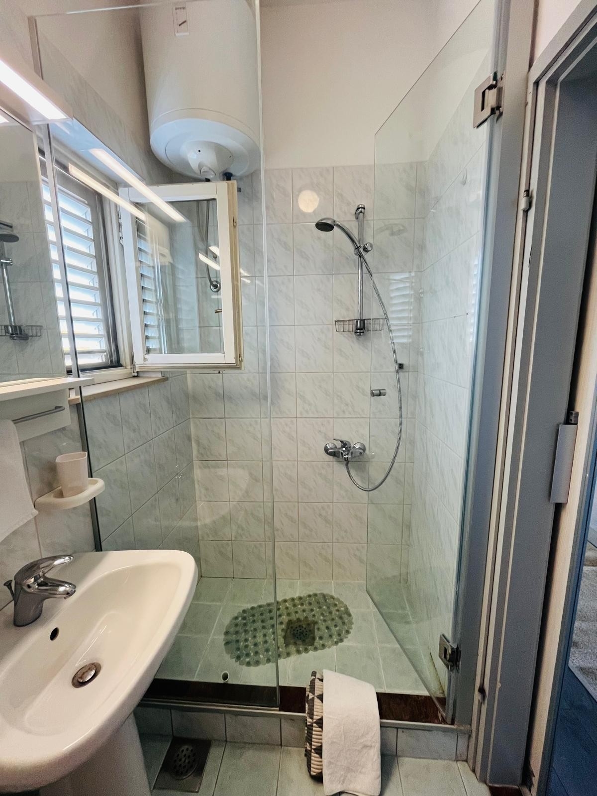 Apartament może przyjąć 4 gości. Łóżka znajdują się w sypialniach, których jest 1, oraz w pokoju dziennym, na powierzchni 31m2. Goście mają dostęp do balkonu, by korzystać z ciepłych, letnich wieczorów. Z apartamentu roztacza się widok na morze. Możliwość przygotowywania posiłków poprzez korzystanie ze wspólnego grilla. WLICZONE W CENĘ: taksa pobytowa, sprzątanie końcowe, klimatyzacja, parking, internet, żelazko, suszarka do włosów, parasol. Dostępność dodatkowych usług w rezerwowanym terminie oraz ich cenę (jeśli nie jest podana) należy sprawdzić wcześniej. Za dodatowe usługi, które nie zostały uwzględnione w kalkulacji ceny, płaci się bezpośrednio właścicielowi obiektu, pod warunkiem śe gość korzysta z tych usług.