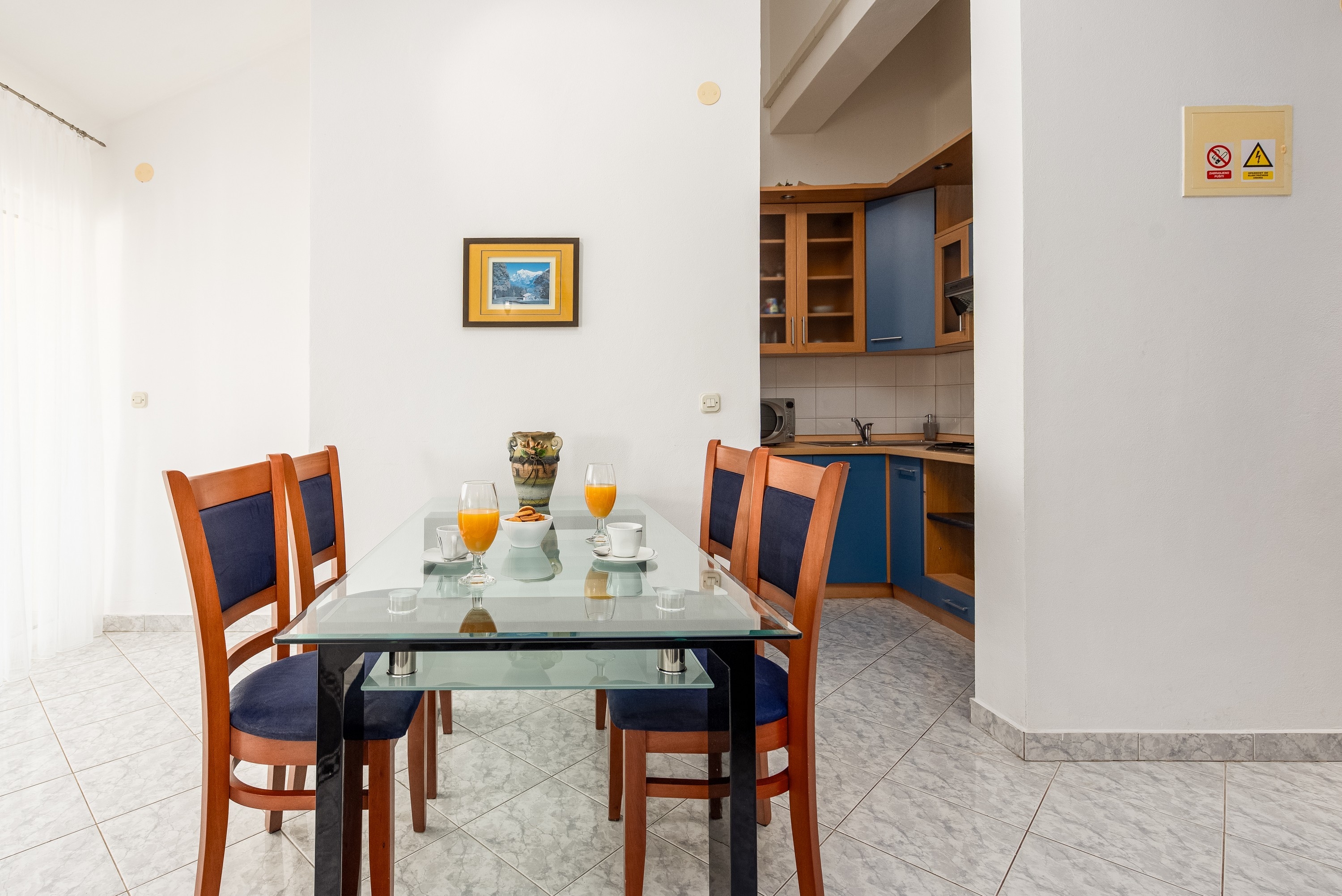 Apartament może przyjąć 4 gości. Łóżka znajdują się w sypialniach, których jest 1, oraz w pokoju dziennym, na powierzchni 60m2. Goście mają dostęp do balkonu, by korzystać z ciepłych, letnich wieczorów. Możliwość przygotowywania posiłków poprzez korzystanie ze wspólnego grilla. W trakcie swojego pobytu goście mogą korzystać ze wspólnego basenu. WLICZONE W CENĘ: taksa pobytowa, sprzątanie końcowe, klimatyzacja, basen, parking, internet, łóżeczko dziecięce, suszarka do włosów, parasol, leżaki. OBOWIĄZKOWE KOSZTY DODATKOWE: dopłata za krótki termin (procent dopłaty w zalezności od liczby noclegów: 30% - 1, 20% - 2, 10% - 3). Dostępność dodatkowych usług w rezerwowanym terminie oraz ich cenę (jeśli nie jest podana) należy sprawdzić wcześniej. Za dodatowe usługi, które nie zostały uwzględnione w kalkulacji ceny, płaci się bezpośrednio właścicielowi obiektu, pod warunkiem śe gość korzysta z tych usług.