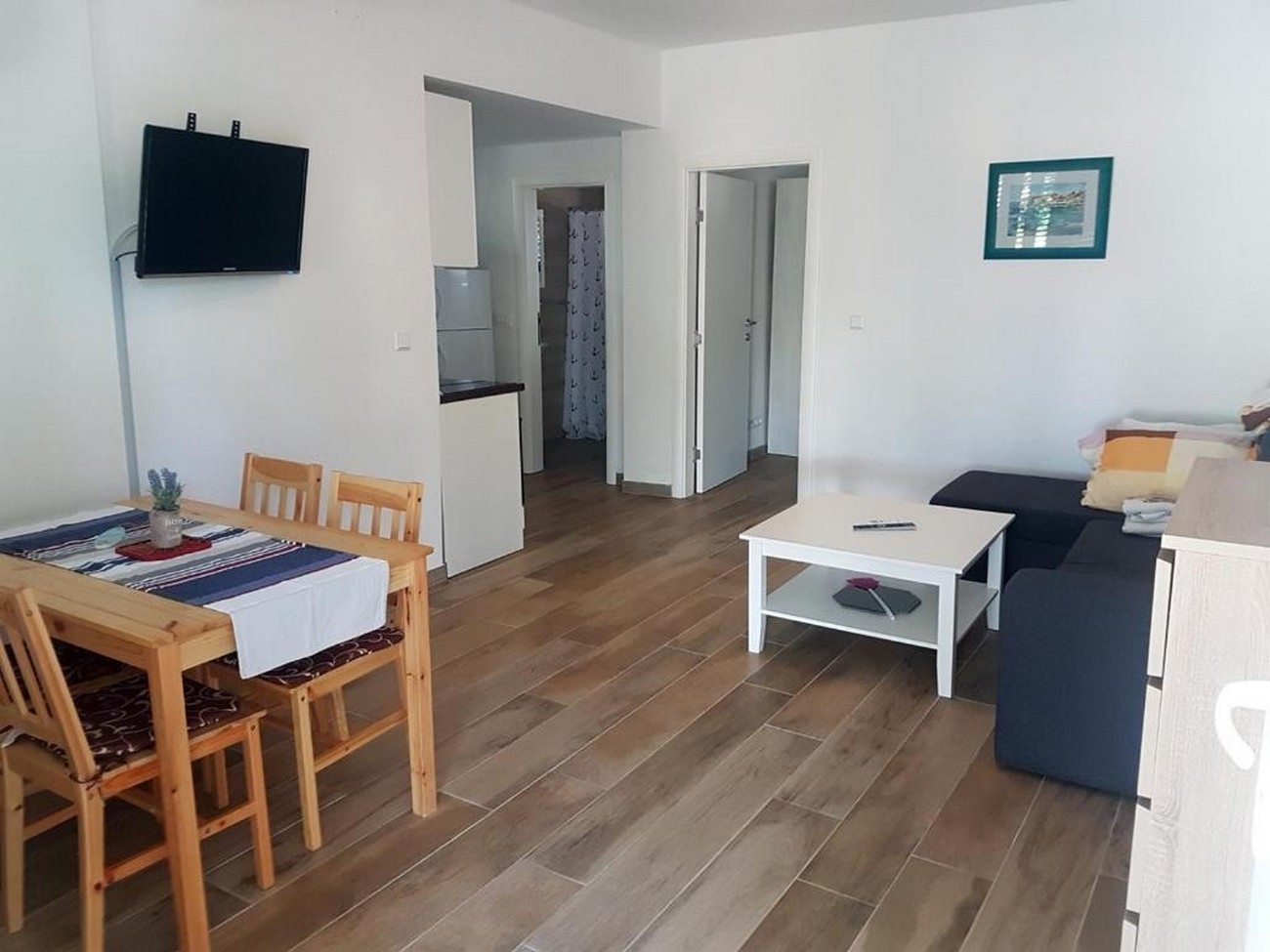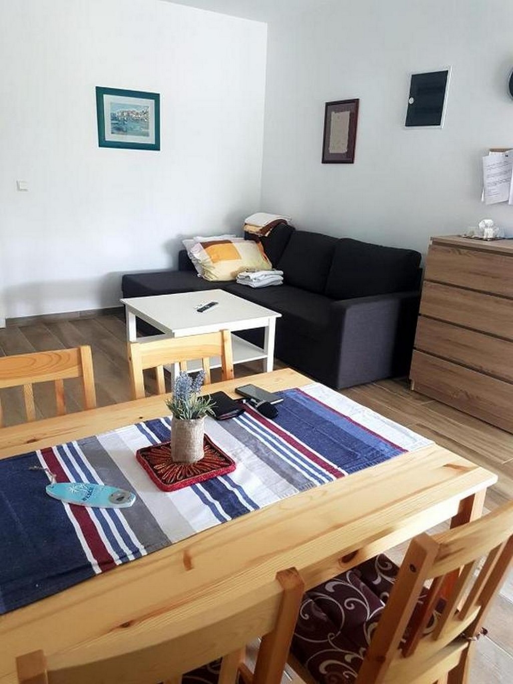 Apartament może przyjąć 4 gości. Łóżka znajdują się w sypialniach, których jest 1, oraz w pokoju dziennym, na powierzchni 44m2. Goście mają dostęp do tarasu, by korzystać z ciepłych, letnich wieczorów. Możliwość przygotowywania posiłków poprzez korzystanie ze wspólnego grilla. Do kwatery można przyjechać ze zwierzęciem domowym, a usługa jest wliczona w cenę wynajęcia kwatery. WLICZONE W CENĘ: taksa pobytowa, sprzątanie końcowe, klimatyzacja, parking, internet, zwierzęta domowe. Dostępność dodatkowych usług w rezerwowanym terminie oraz ich cenę (jeśli nie jest podana) należy sprawdzić wcześniej. Za dodatowe usługi, które nie zostały uwzględnione w kalkulacji ceny, płaci się bezpośrednio właścicielowi obiektu, pod warunkiem śe gość korzysta z tych usług.
