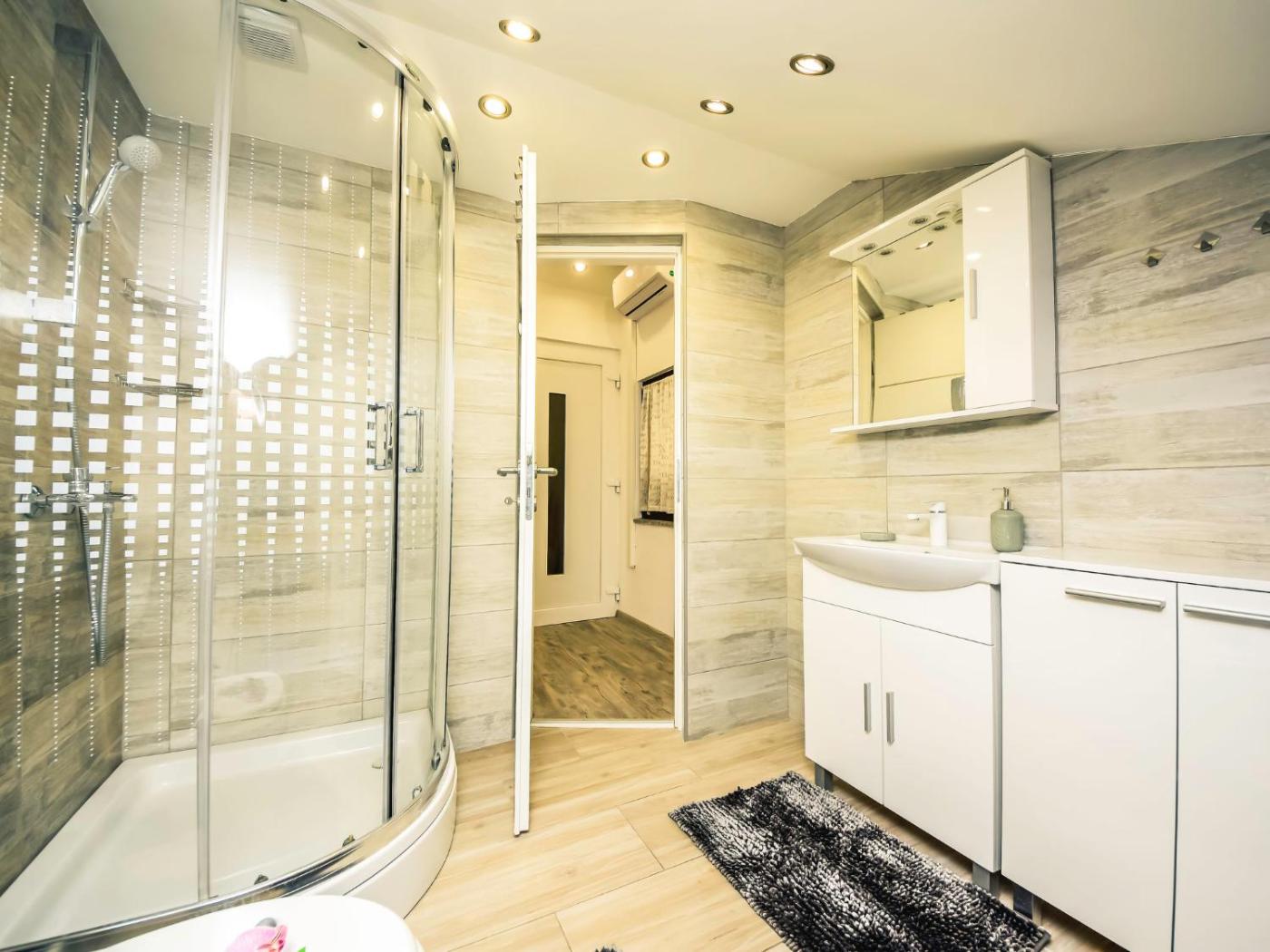 Apartament. This air-conditioned apartment consists of 1 living room, 2 separate bedrooms and 1 bathroom with a shower. The fully equipped kitchen features a stovetop, a refrigerator, a dishwasher and kitchenware. This apartment comes with a dining area, a TV with satellite channels a coffee machine and a terrace. The unit offers 4 beds. Apartament - 5 osobowy. Powierzchnia pokoju ok.: 60 mkw.