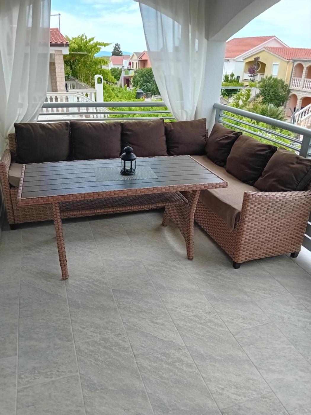Apartament z tarasem. Boasting a private entrance, this air-conditioned apartment includes 1 living room, 1 separate bedroom and 1 bathroom with a shower and a hairdryer. Guests will find a stovetop, a refrigerator, kitchenware and a microwave in the fully equipped kitchen. The apartment also features a barbecue. Featuring a terrace with sea views, this apartment also offers a tea and coffee maker and a flat-screen TV with satellite channels. The unit has 3 beds. Apartament - 4 osobowy. Powierzchnia pokoju ok.: 40 mkw.