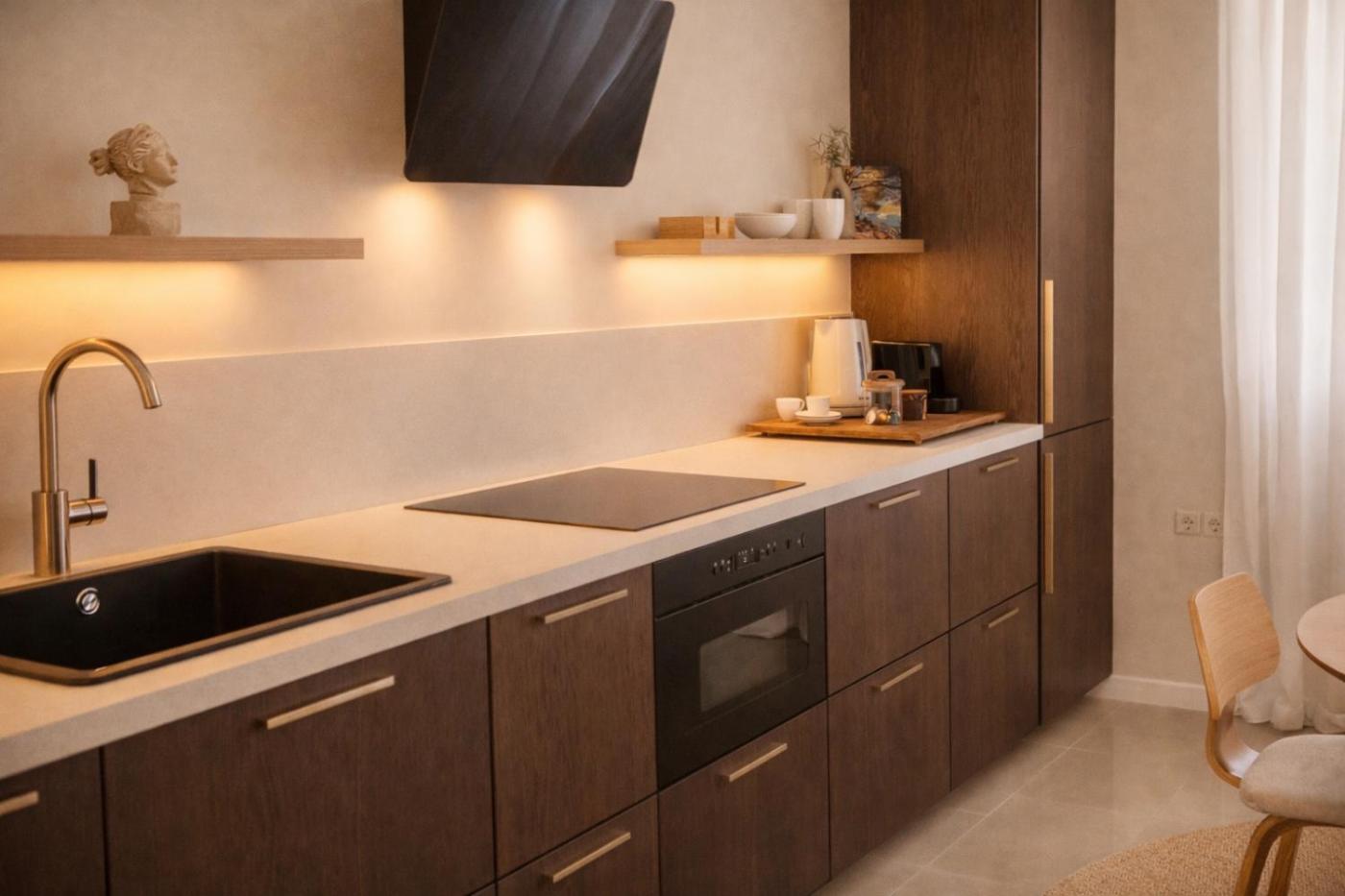 One-Bedroom Apartment. This apartment comes with 1 living room, 1 separate bedroom and 1 bathroom with a shower and free toiletries. In the kitchen, guests will find a refrigerator, a dishwasher, kitchenware and a microwave. The air-conditioned apartment features a flat-screen TV with streaming services, a washing machine, a tea and coffee maker, a seating area as well as sea views. The unit has 2 beds.