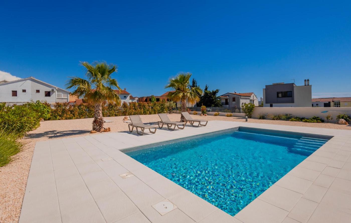 Dom wakacyjny z 4 sypialniami. The private pool is the standout feature of this holiday home. Boasting a private entrance, this air-conditioned holiday home comes with 1 living room, 4 separate bedrooms and 4 bathrooms with a shower and a hairdryer. Guests will find a refrigerator, a dishwasher, kitchenware and an oven in the well-fitted kitchen. The holiday home also includes a barbecue. The spacious holiday home features a washing machine, a tea and coffee maker, a dining area, a TV, as well as sea views. The unit has 5 beds. Dom wakacyjny - 8 osobowy. Powierzchnia pokoju ok.: 200 mkw.