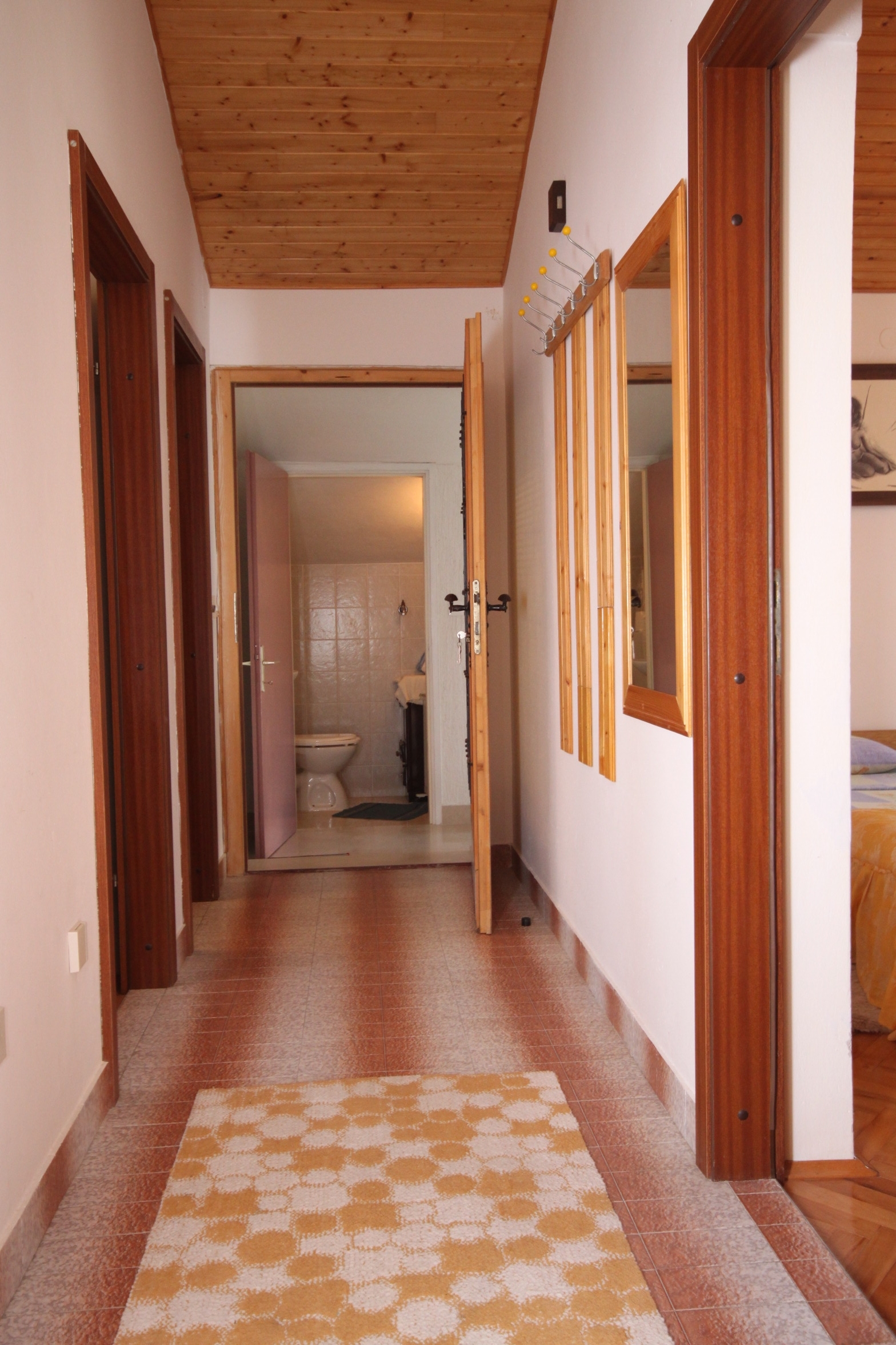 Apartament może przyjąć 5 gości. Łóżka znajdują się w sypialniach, których jest 3, na powierzchni 50m2. Goście mają dostęp do tarasu, by korzystać z ciepłych, letnich wieczorów. Z apartamentu roztacza się widok na morze. Możliwość przygotowywania posiłków poprzez korzystanie ze wspólnego grilla. Kwatera ma pomieszczenia, które są oddzielone od reszty tej kwatery. WLICZONE W CENĘ: taksa pobytowa, sprzątanie końcowe, parking, internet, łóżeczko dziecięce, deska do prasowania, suszarka do włosów. OBOWIĄZKOWE KOSZTY DODATKOWE: dopłata za krótki termin (procent dopłaty w zalezności od liczby noclegów: 30% - 1, 20% - 2, 10% - 3). NIEOBOWIĄZKOWE KOSZTY DODATKOWE: klimatyzacja (7,00 € za nocleg), pranie bielizny (5,00 € pranie), dostawka (10,00 € za nocleg). Dostępność dodatkowych usług w rezerwowanym terminie oraz ich cenę (jeśli nie jest podana) należy sprawdzić wcześniej. Za dodatowe usługi, które nie zostały uwzględnione w kalkulacji ceny, płaci się bezpośrednio właścicielowi obiektu, pod warunkiem śe gość korzysta z tych usług.