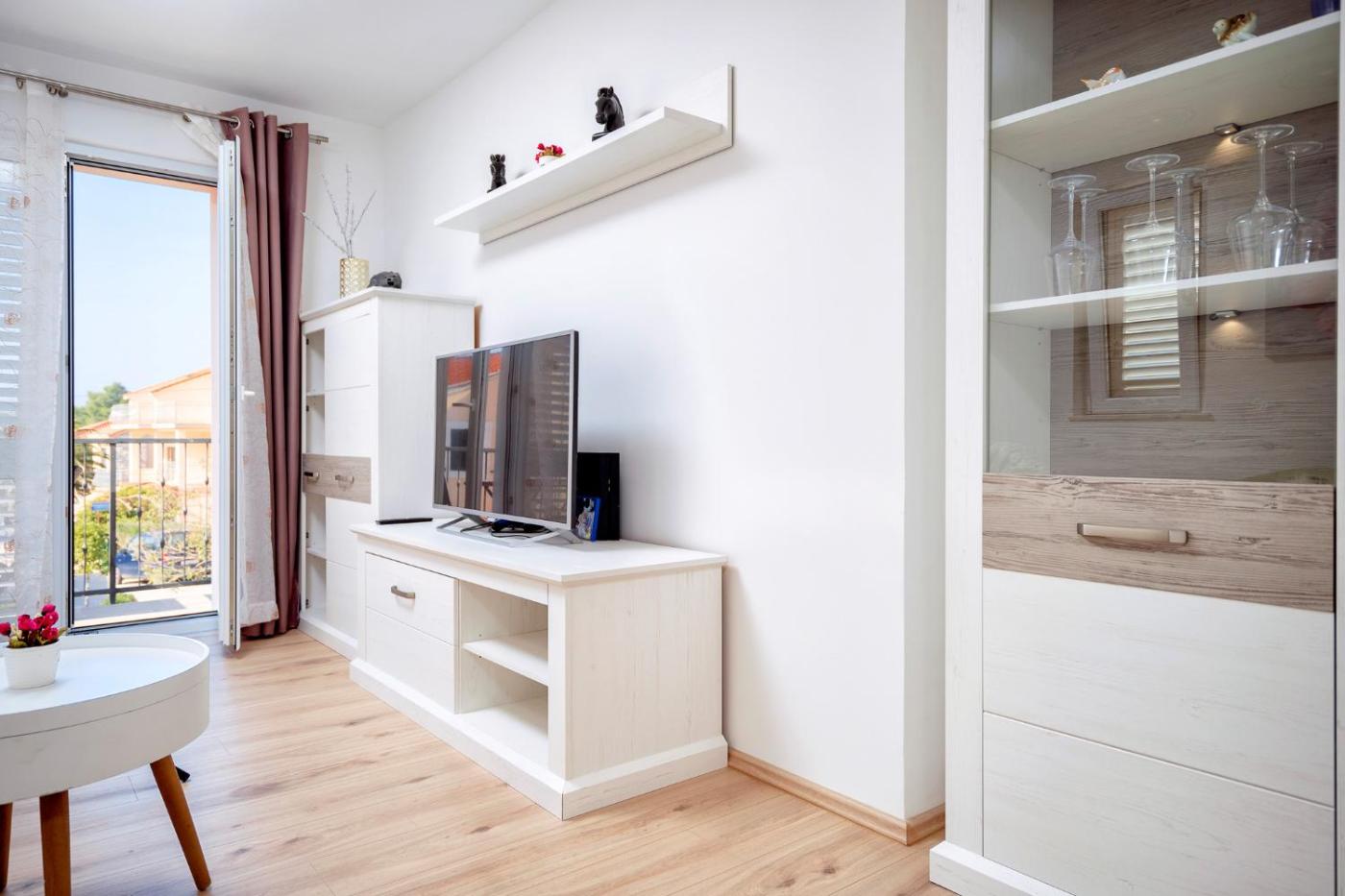 Apartament z 1 sypialnią. Boasting a private entrance, this air-conditioned apartment comes with 1 living room, 1 separate bedroom and 1 bathroom with a walk-in shower and a hairdryer. Guests will find a stovetop, a refrigerator, a dishwasher and kitchenware in the well-equipped kitchen. The apartment also includes a barbecue. Featuring a terrace with sea views, this apartment also features a washing machine and a flat-screen TV with satellite channels. The unit has 2 beds. Apartament - 4 osobowy. Powierzchnia pokoju ok.: 55 mkw.