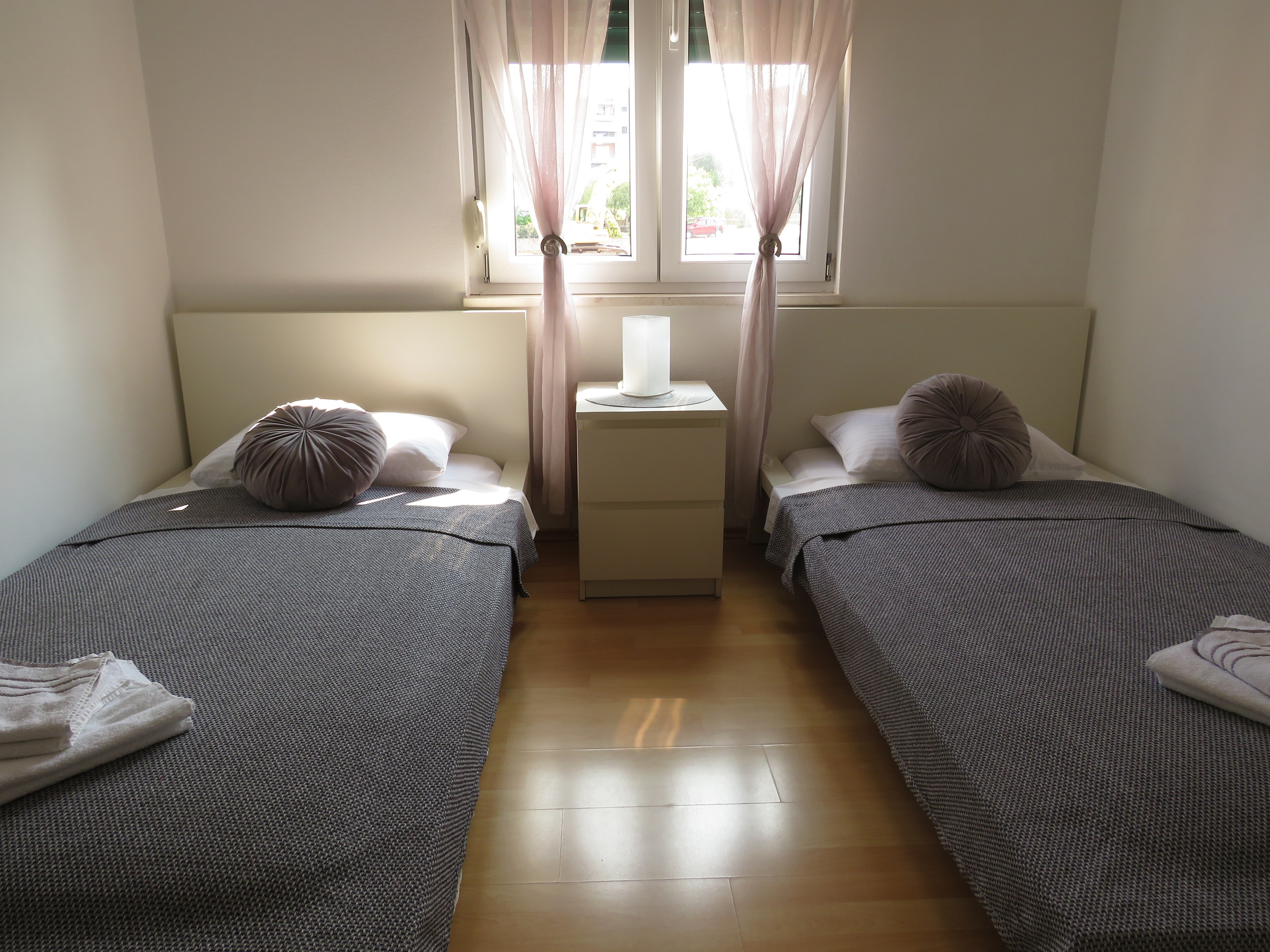 Apartament może przyjąć 4 gości. Łóżka znajdują się w sypialniach, których jest 2, na powierzchni 49m2. Goście mają dostęp do tarasu, by korzystać z ciepłych, letnich wieczorów. Z apartamentu roztacza się widok na morze. Możliwość przygotowywania posiłków poprzez korzystanie ze wspólnego grilla. W trakcie swojego pobytu goście mogą korzystać ze wspólnego basenu. WLICZONE W CENĘ: taksa pobytowa, sprzątanie końcowe, klimatyzacja, basen, parking, internet, łóżeczko dziecięce, żelazko, deska do prasowania, suszarka do włosów. OBOWIĄZKOWE KOSZTY DODATKOWE: dopłata za krótki termin (procent dopłaty w zalezności od liczby noclegów: 30% - 1, 20% - 2, 10% - 3). Dostępność dodatkowych usług w rezerwowanym terminie oraz ich cenę (jeśli nie jest podana) należy sprawdzić wcześniej. Za dodatowe usługi, które nie zostały uwzględnione w kalkulacji ceny, płaci się bezpośrednio właścicielowi obiektu, pod warunkiem śe gość korzysta z tych usług.