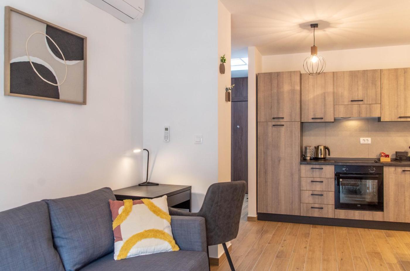 Apartament z 1 sypialnią. This apartment comes with 1 living room, 1 separate bedroom and 1 bathroom with a walk-in shower and free toiletries. Guests can make meals in the kitchen that features a stovetop, a refrigerator, a dishwasher and kitchenware. The air-conditioned apartment features a flat-screen TV with cable channels, soundproof walls, a tea and coffee maker, a dining area as well as city views. The unit has 2 beds. Apartament - 3 osobowy. Powierzchnia pokoju ok.: 40 mkw.