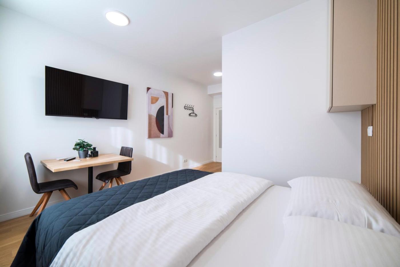 Studio typu Deluxe. Providing free toiletries, this studio includes a private bathroom with a shower and a hairdryer. Meals can be prepared in the kitchen, which comes with a stovetop, a refrigerator, kitchenware and a toaster. The air-conditioned studio provides a flat-screen TV, a washing machine, a private entrance, a wardrobe as well as city views. The unit offers 1 bed. Studio - 2 osobowy. Powierzchnia pokoju ok.: 25 mkw. ;